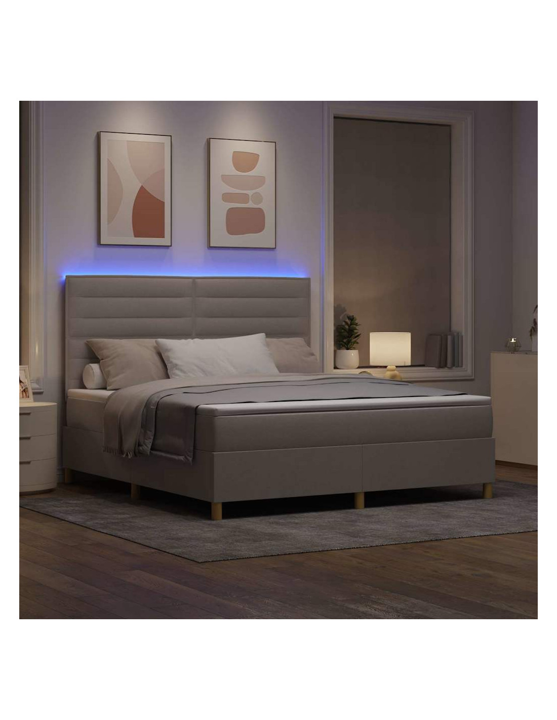 - Illuminazione LED: Rendi speciale il tuo spazio notte con le strisce RGB LED dietro la testiera. Con luci regolabili, creano un'atmosfera rilassata per ogni occasione, rendendo questa caratteristica sia bella che utile.