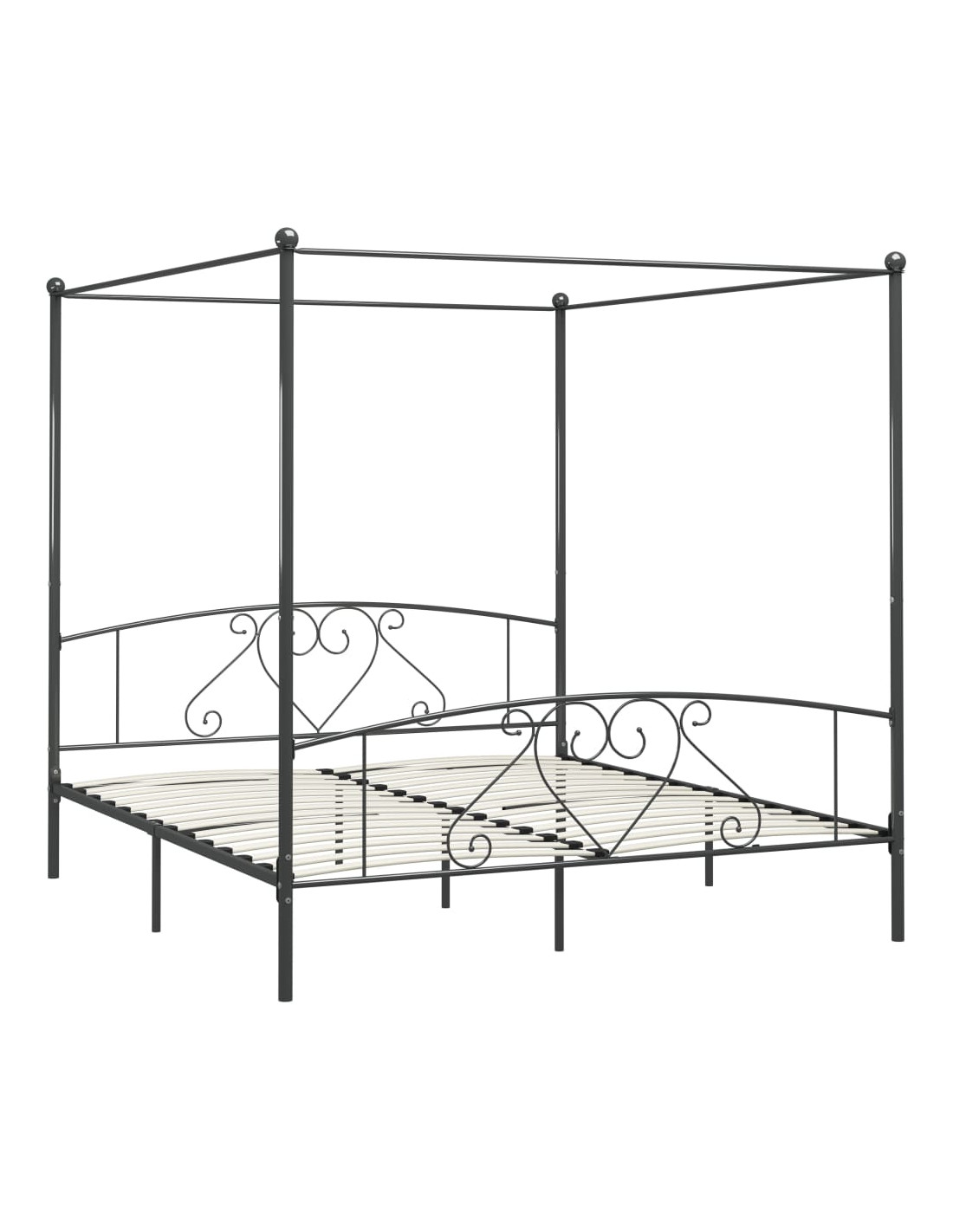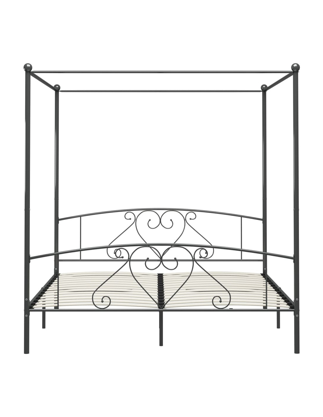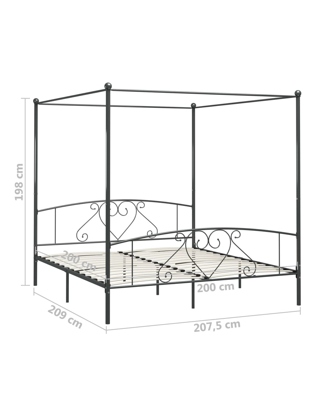 Create un aspetto elegante e classico nella vostra camera da letto con il nostro giroletto a baldacchino in metallo! Il letto è progettato in modo intelligente con una struttura superiore per appendere le tende preferite, che aggiungono un fascino unico alla vostra camera da letto, creando allo stesso tempo maggiore riservatezza. Realizzata in metallo robusto, la base del letto è estremamente robusta e durevole. Con tutte queste caratteristiche combinate, potete dormire sonni tranquilli! La struttura per il letto deve essere assemblata. Vi preghiamo di notare che la consegna include un giroletto con la rete a doghe. Il materasso non è incluso. Potete visitare il nostro negozio per i materassi corrispondenti.