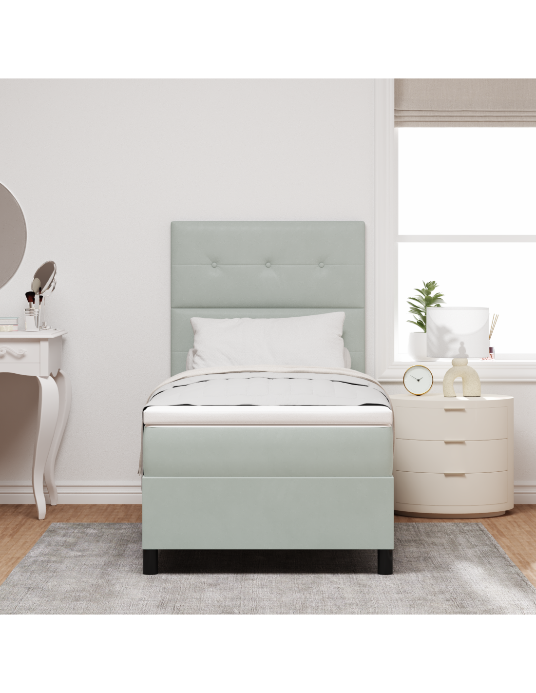 - Costruzione di qualità: Il letto è realizzato con tessuti di alta qualità e legno ingegnerizzato, offrendo stabilità e comfort. I materiali lavorano insieme per creare un luogo di riposo robusto e accogliente.