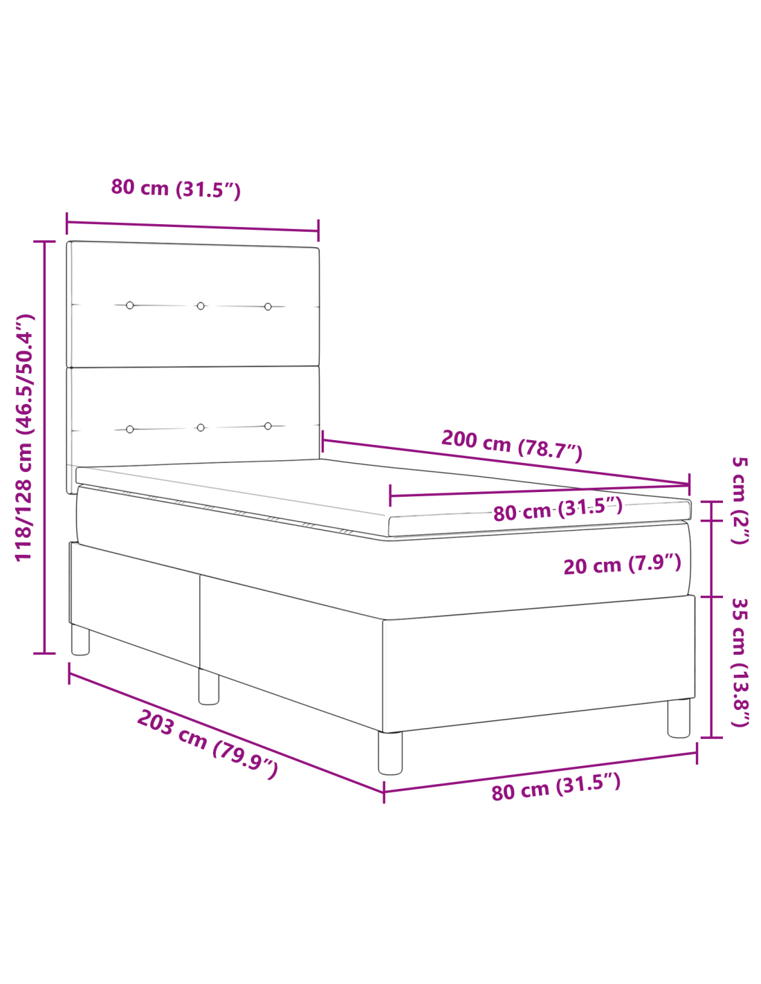 - Dimensione materasso: Piccolo singolo (80 cm x 200 cm / 31" x 79")