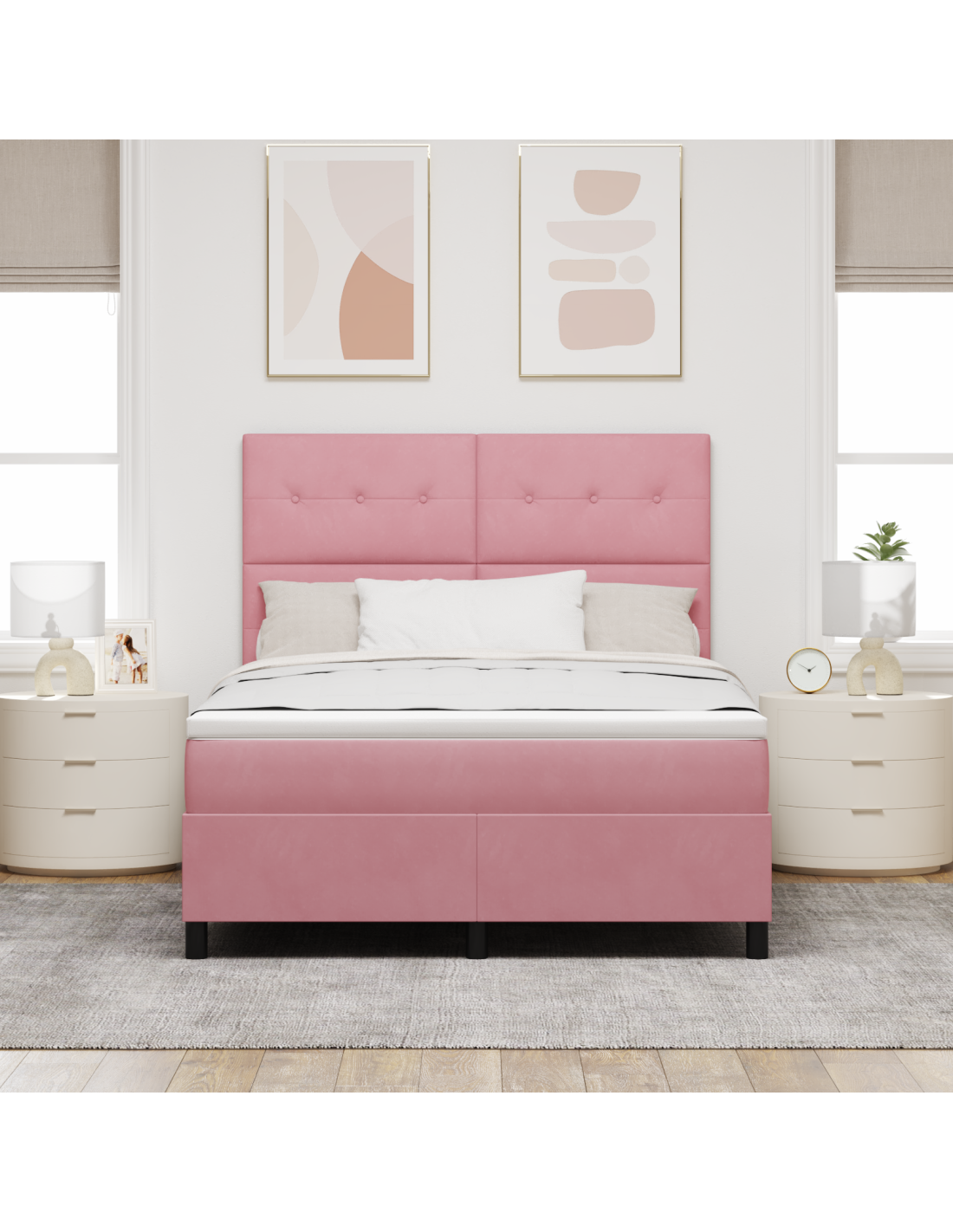 - Costruzione di qualità: Il letto è realizzato con tessuti di alta qualità e legno ingegnerizzato, offrendo stabilità e comfort. I materiali lavorano insieme per creare un luogo di riposo robusto e accogliente.