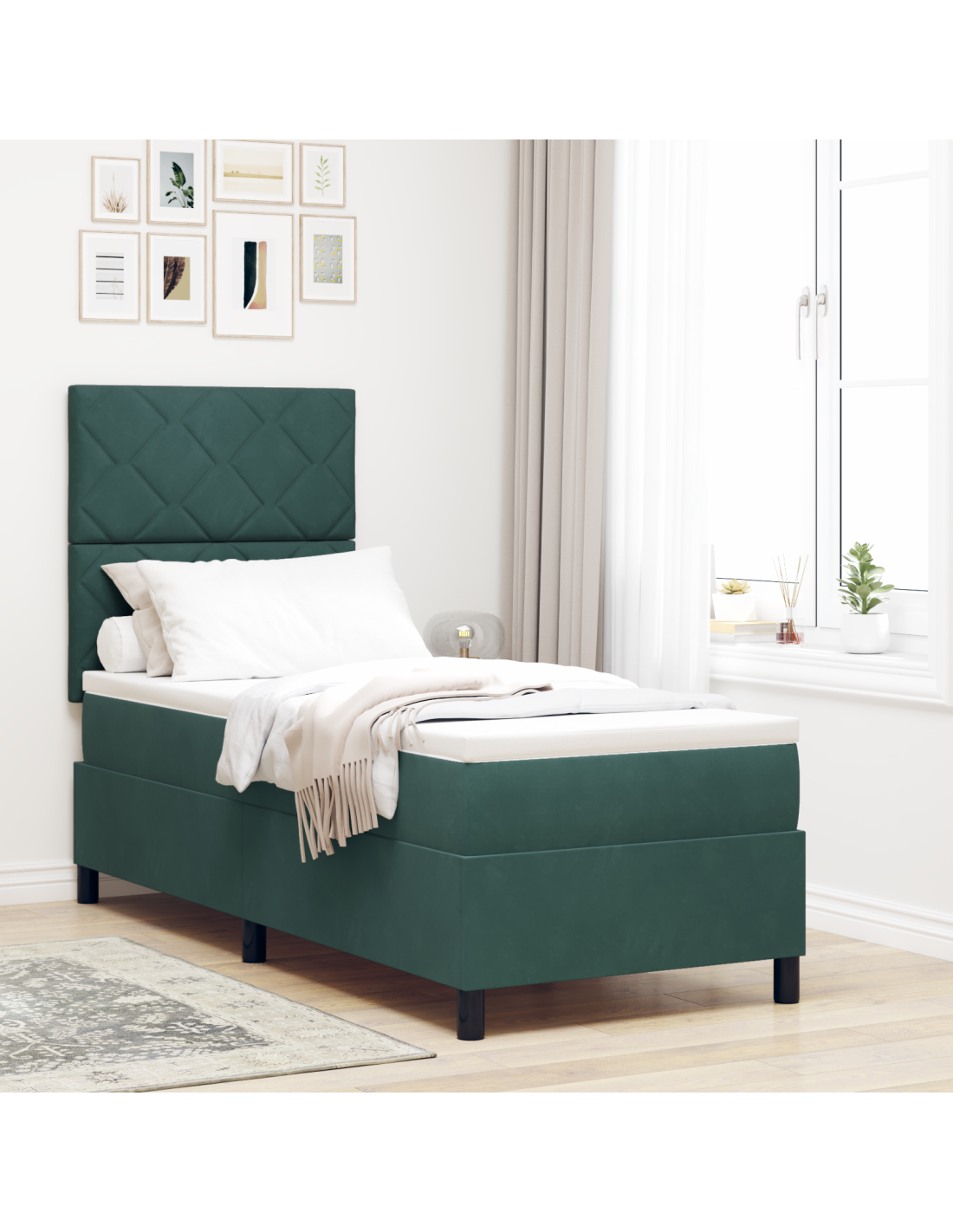 - Costruzione di qualità: Il letto è realizzato con tessuti di alta qualità e legno ingegnerizzato, offrendo stabilità e comfort. I materiali lavorano insieme per creare un luogo di riposo robusto e accogliente.