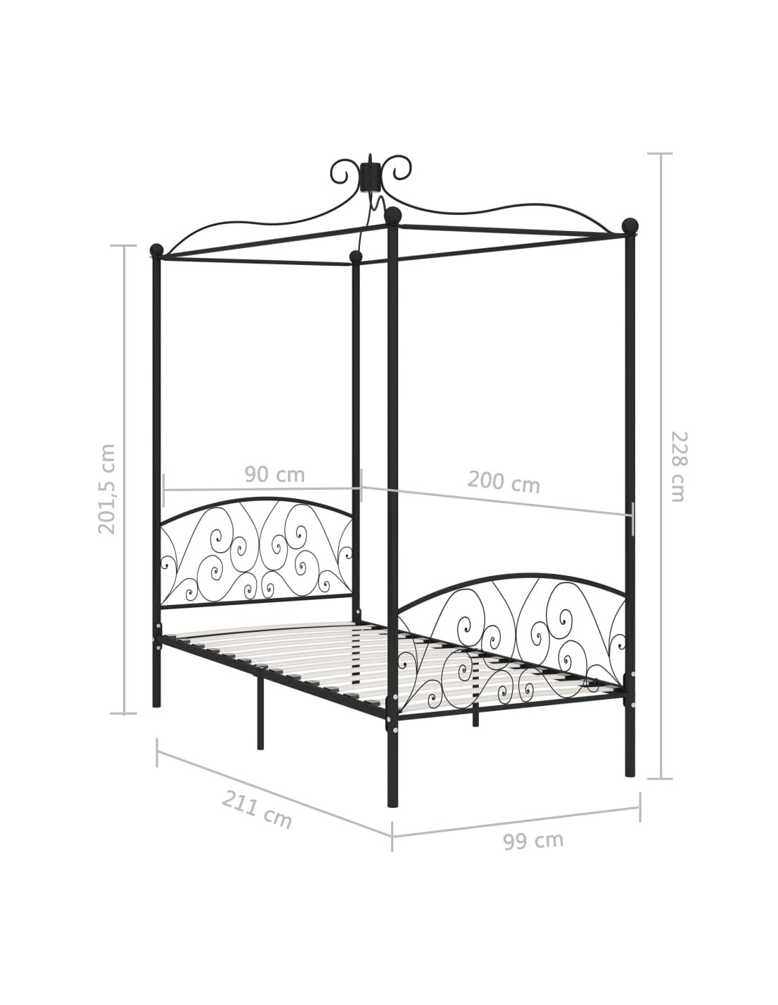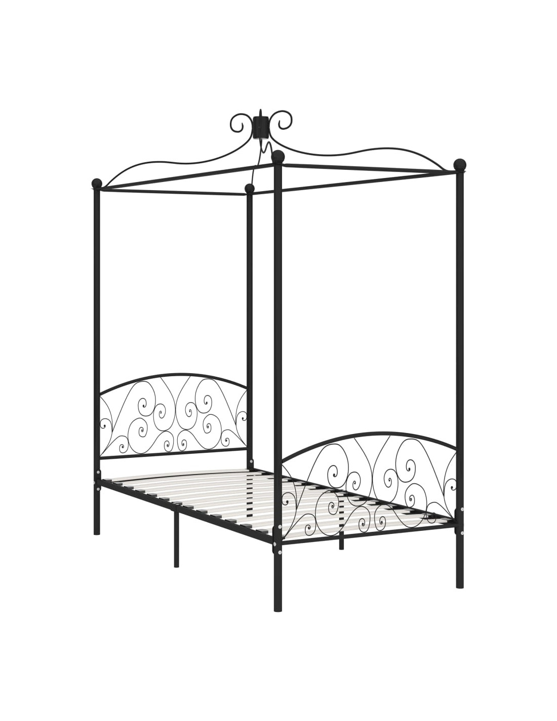 Donerete uno stile elegante e classico nella vostra camera da letto con la nostra struttura a baldacchino in metallo! Il letto è elegantemente progettato con un telaio superiore per appendere una tenda o zanzariera, aggiungendo così un fascino unico alla vostra camera da letto e creando al contempo maggiore privacy. Realizzato in metallo robusto, questo telaio è estremamente resistente e durevole. Grazie a tutte queste funzionalità combinate, è garantito un sonno tranquillo! Il letto a baldacchino necessita di assemblaggio. Si prega di notare che la consegna include un giroletto con una rete a doghe; il materasso non è incluso. Potete fare riferimento al nostro negozio per i materassi da abbinare.