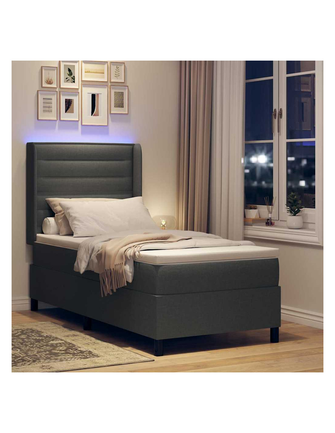 Questo letto box spring LED moderno porta stile e innovazione nella tua camera da letto. È progettato per migliorare il tuo sonno, mescolando bellezza e funzionalità. La combinazione di tessuto e legno crea un look contemporaneo perfetto per ogni design moderno. Ti dà comfort e un tocco di classe, garantendo notti di sonno tranquille e un bel punto focale nella tua stanza.