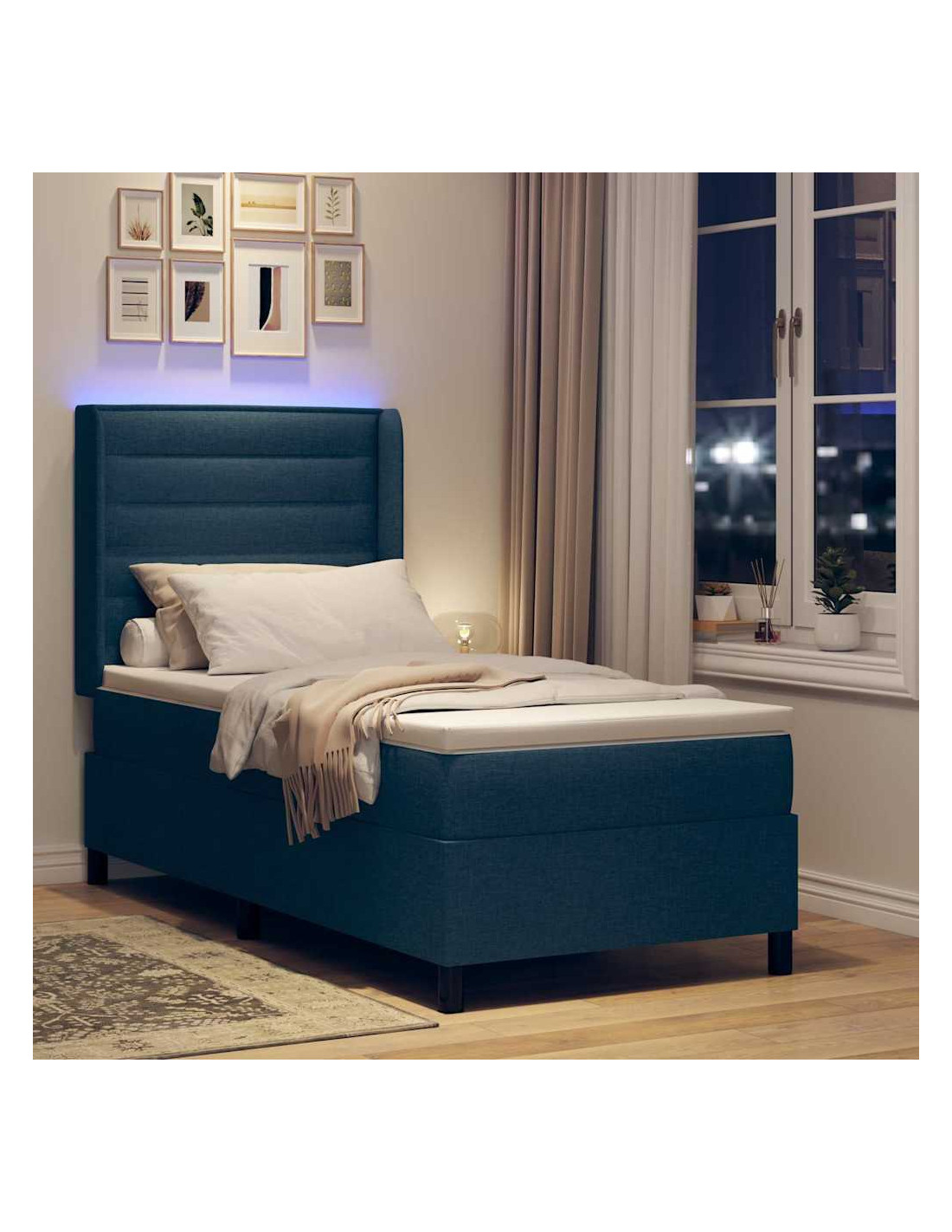 - Cosa include Il letto viene fornito con una base a doghe, un materasso con molle insacchettate e una striscia LED. La base a doghe offre un supporto robusto, mentre il materasso è progettato per adattarsi e isolare i movimenti. La striscia LED dà un tocco moderno, con luci regolabili per creare l'atmosfera giusta.