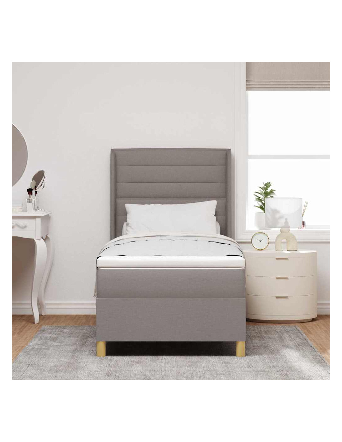 Questo Modern Box Spring Bed è perfetto per qualsiasi camera da letto. Combina comfort di lusso con un look elegante e contemporaneo. Con linee essenziali e uno stile funzionale, è progettato per dare un tocco in più al tuo spazio, assicurando anche un sonno ristoratore per tutti. La struttura a molle offre supporto e resistenza, soddisfacendo diverse abitudini di sonno grazie al suo materasso in schiuma medio-rigido.