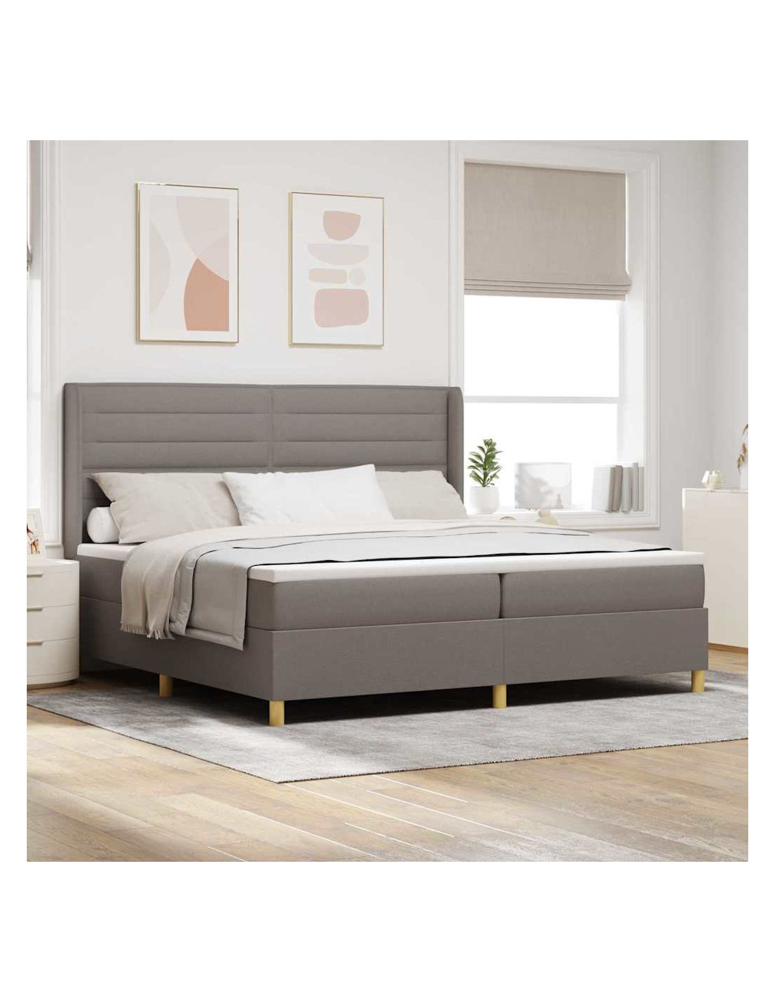 Questo Modern Box Spring Bed è perfetto per qualsiasi camera da letto. Combina comfort di lusso con un look elegante e contemporaneo. Con linee essenziali e uno stile funzionale, è progettato per dare un tocco in più al tuo spazio, assicurando anche un sonno ristoratore per tutti. La struttura a molle offre supporto e resistenza, soddisfacendo diverse abitudini di sonno grazie al suo materasso in schiuma medio-rigido.