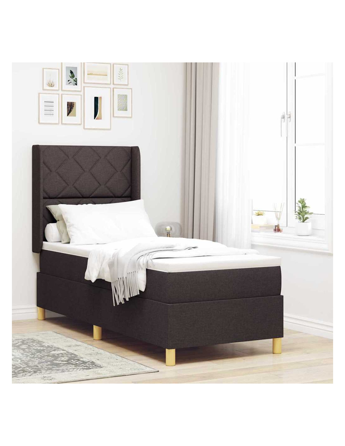 - Materiali: Questo letto a molle è realizzato in tessuto di alta qualità, aggiungendo un tocco elegante al tuo spazio. La superficie traspirante migliora il comfort, mentre il telaio in legno ingegnerizzato è super stabile. Insieme, questi materiali offrono comfort ed eleganza.