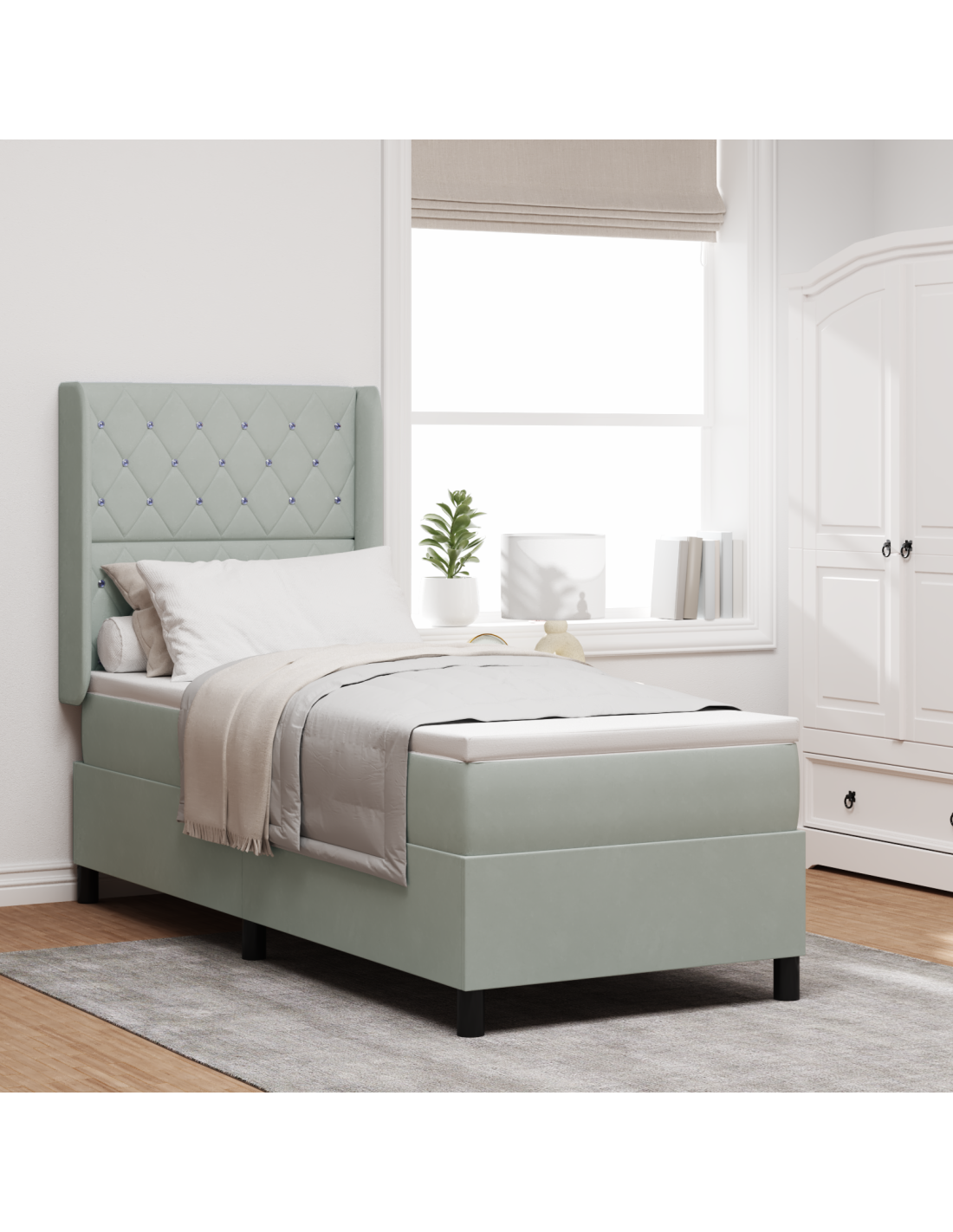 Un'idea moderna per chi cerca eleganza e funzionalità, il letto box spring con luci LED rende il tuo spazio unico grazie al suo design contemporaneo e all'illuminazione colorata. La finitura in velluto, insieme ai dettagli in legno ingegnerizzato, trasmette un senso di lusso, facendo di questo letto un pezzo d'arredo straordinario per ogni stanza. Le luci LED multicolori permettono di creare l'atmosfera giusta secondo le tue esigenze, rendendo l'ambiente perfetto per il relax.
