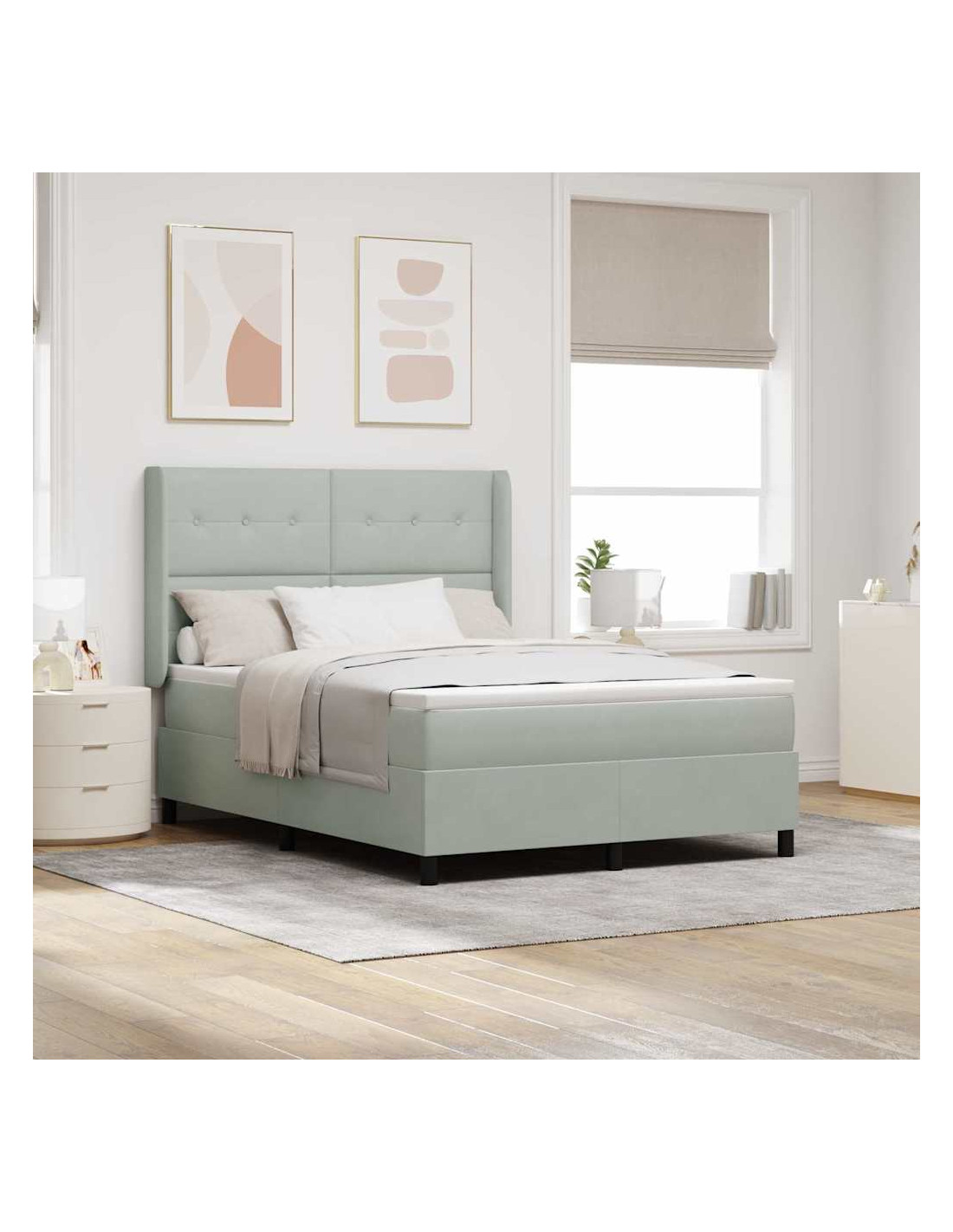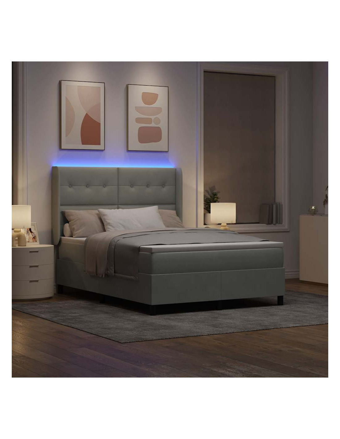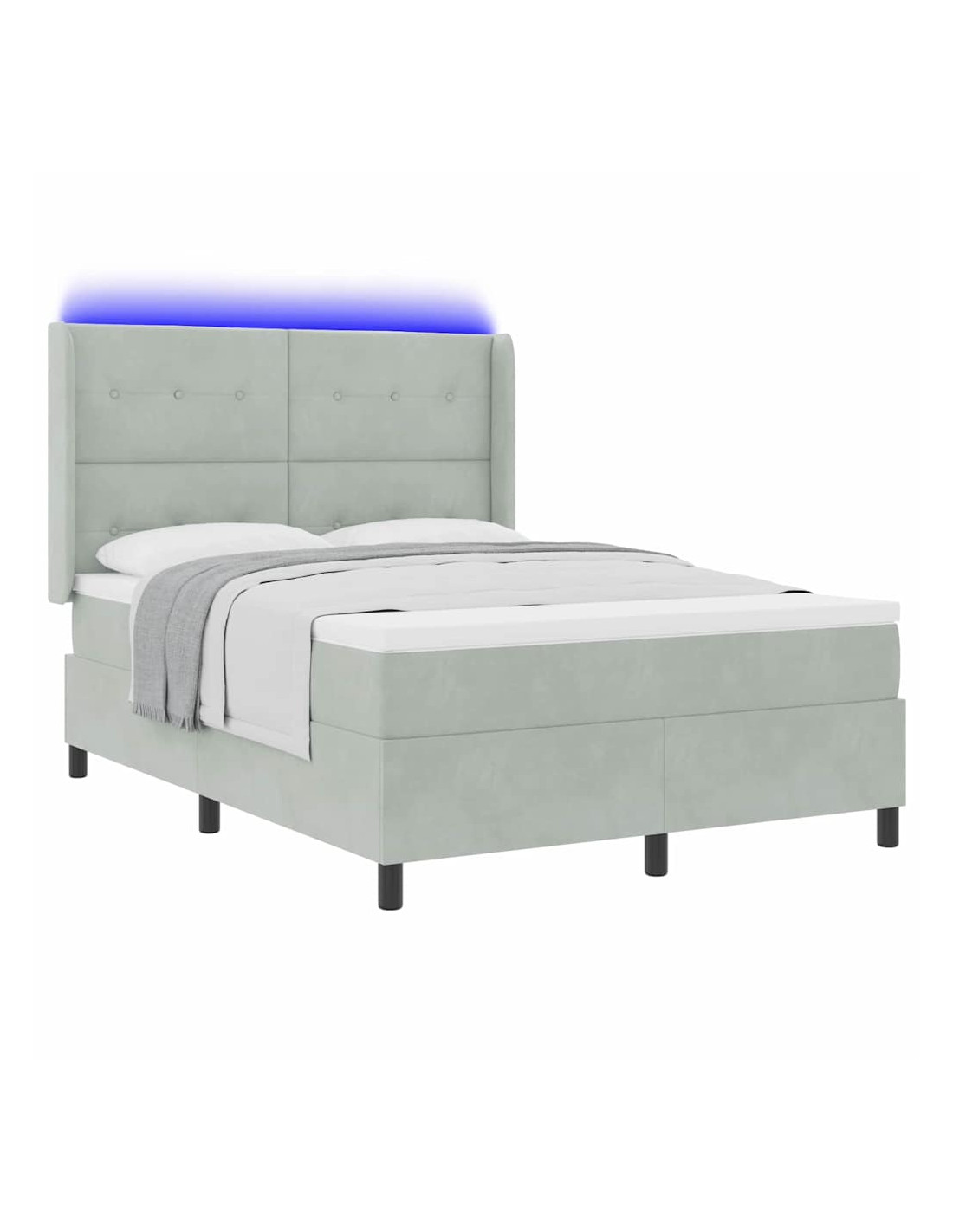 Un'idea moderna per chi cerca eleganza e funzionalità, il letto box spring con luci LED rende il tuo spazio unico grazie al suo design contemporaneo e all'illuminazione colorata. La finitura in velluto, insieme ai dettagli in legno ingegnerizzato, trasmette un senso di lusso, facendo di questo letto un pezzo d'arredo straordinario per ogni stanza. Le luci LED multicolori permettono di creare l'atmosfera giusta secondo le tue esigenze, rendendo l'ambiente perfetto per il relax.