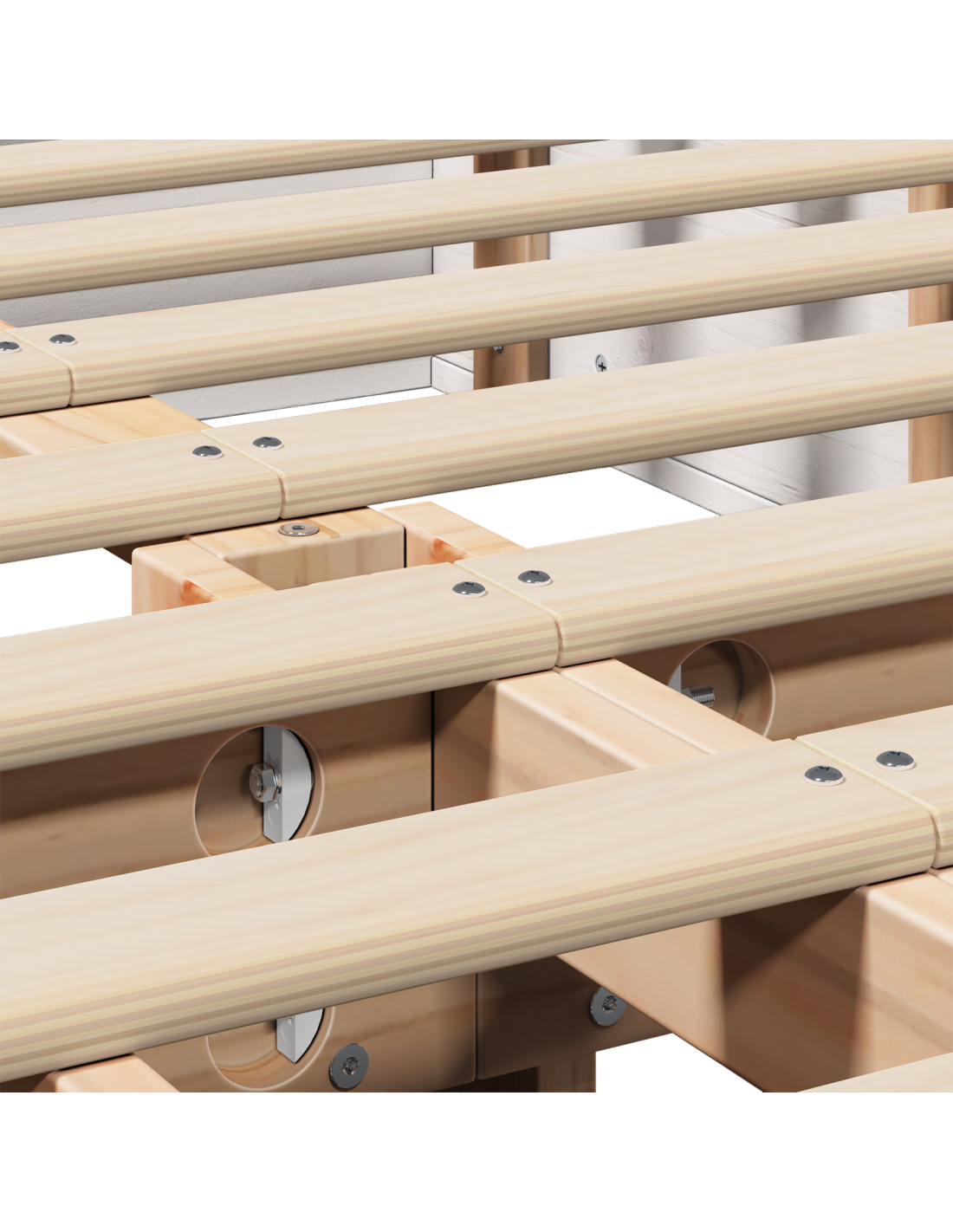 - Legno di Pino Massello: Questo telaio è fatto di legno di pino massello, offrendo una texture calda ed elegante. È una scelta di materiale che garantisce anche resistenza e durata, permettendoti di goderti notti di sonno tranquille per anni.