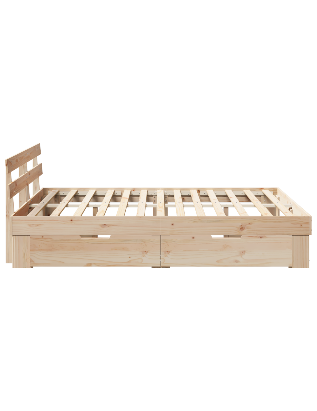 - Testiera & struttura del telaio: in legno massello di pino, offre una base solida per un uso quotidiano. Ogni parte, dalle doghe alla testiera, è pensata per garantire supporto e comfort nel tempo.