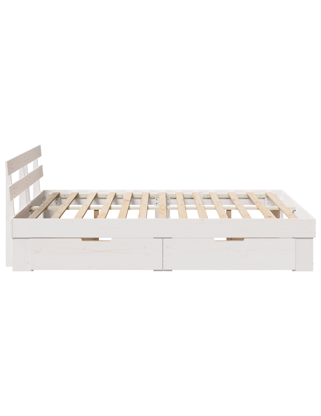 - Testiera & struttura del telaio: in legno massello di pino, offre una base solida per un uso quotidiano. Ogni parte, dalle doghe alla testiera, è pensata per garantire supporto e comfort nel tempo.