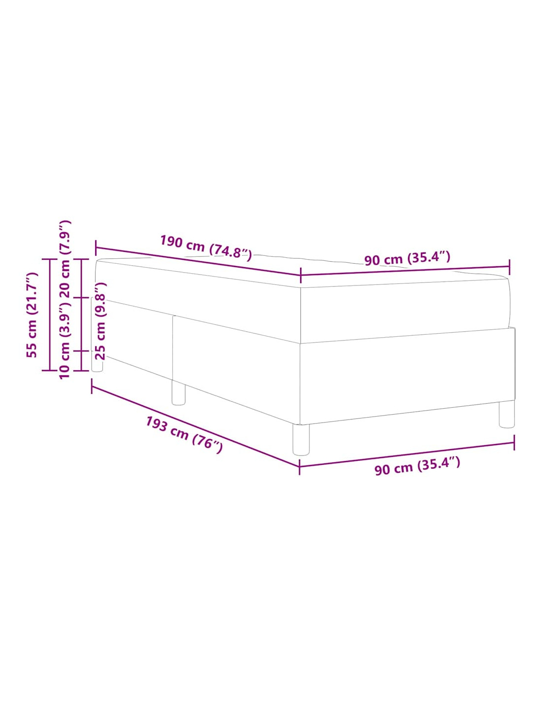 - Dimensione materasso: Singolo corto (90 cm x 190 cm / 35" x 75")