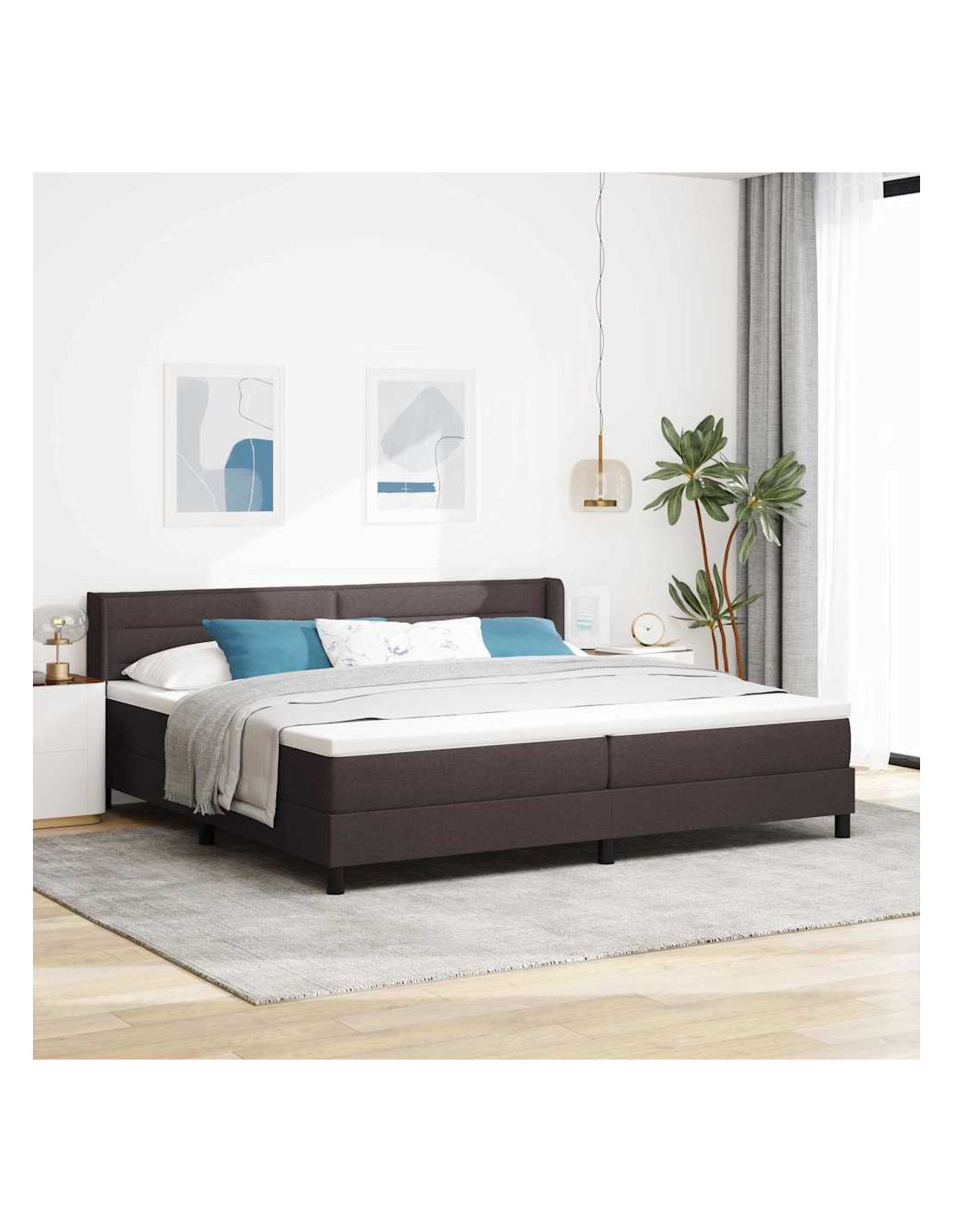 Il letto box spring moderno ha un design elegante che si integra perfettamente nell'arredamento contemporaneo, ideale per chi cerca funzionalità e bellezza. Pensato per essere semplice, questo letto diventa il fulcro della stanza, unendo comfort e stile. I dettagli curati - dalla testiera progettata con cura al materasso supportante - creano uno spazio perfetto per un sonno riposante e una vita raffinata.