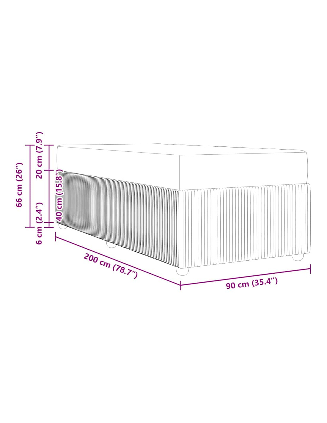 - Dimensione materasso: Singolo (90 cm x 200 cm / 35" x 79")