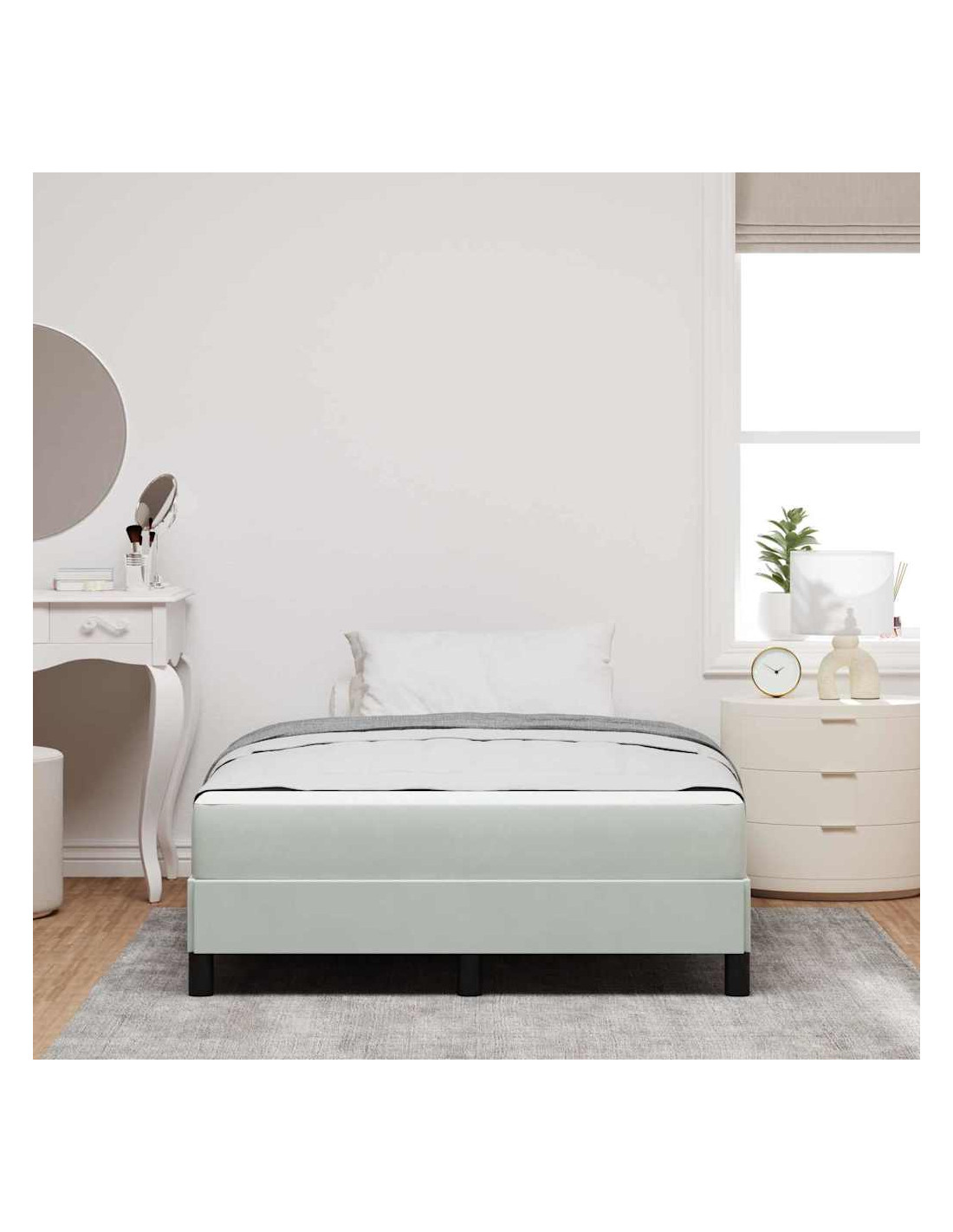 Questo letto box spring con materasso è l'ideale per la camera da letto moderna. Unisce semplicità e funzionalità in un design elegante che si adatta a tutti gli spazi. Approfitta del comfort bilanciato che offre con la sua combinazione di morbidezza e rigidità, perfetto per ogni posizione di sonno. La sua forma rettangolare dà un tocco di eleganza al tuo spazio notte, trasformando ogni camera in un rifugio speciale. Lo stile minimalista del letto e la sua praticità lo rendono un punto focale elegante per notti confortabili.