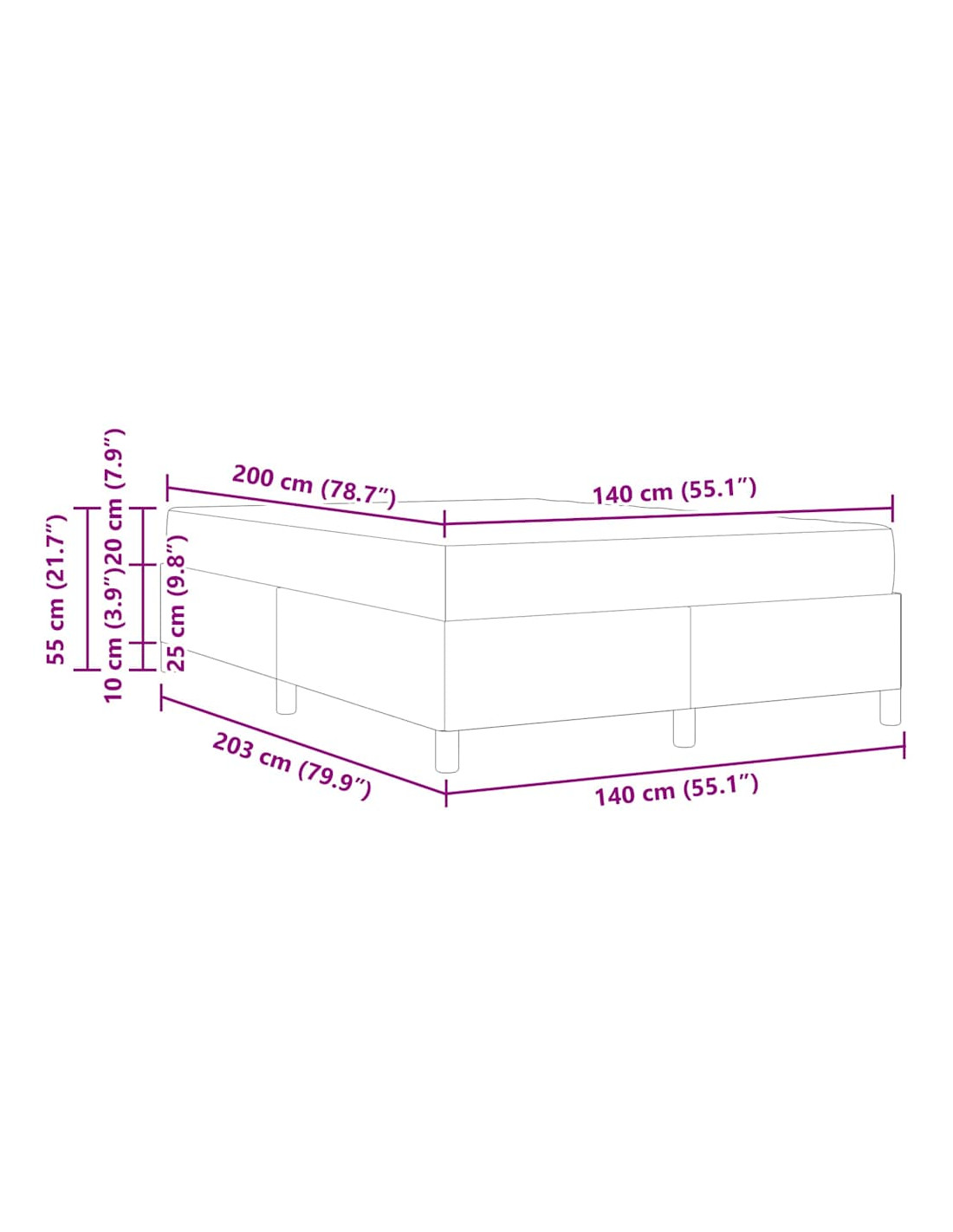 - Dimensione materasso: Matrimoniale (140 cm x 200 cm / 55" x 79")