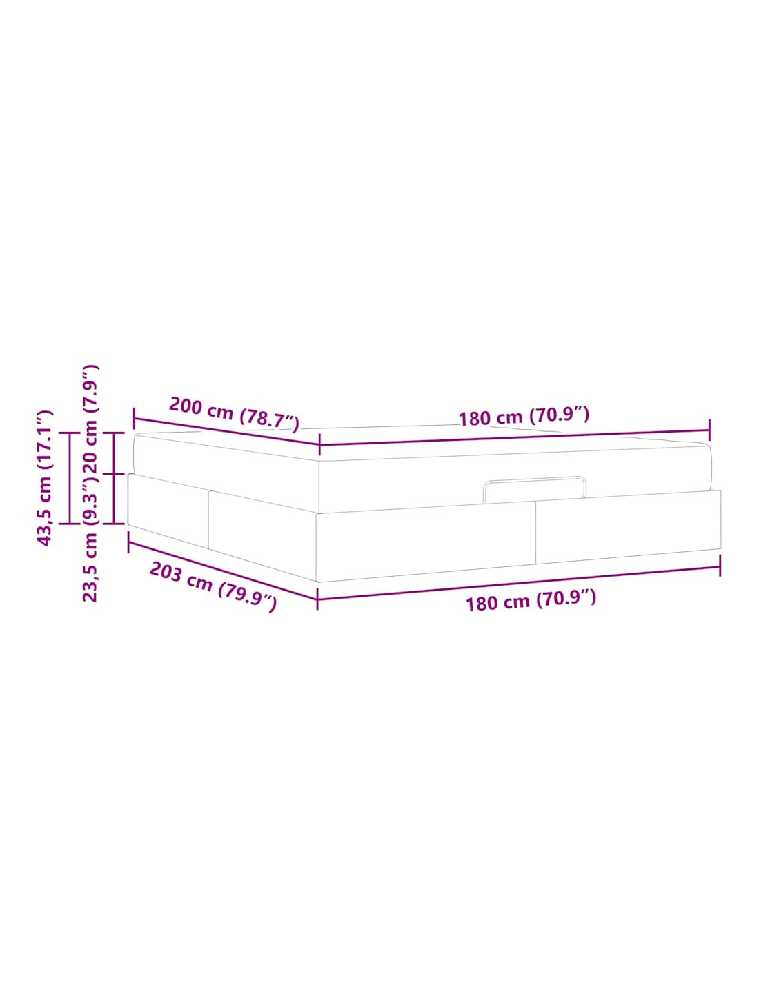 - Dimensioni complessive: 203 x 180 x 43,5 cm (L x P x A)
