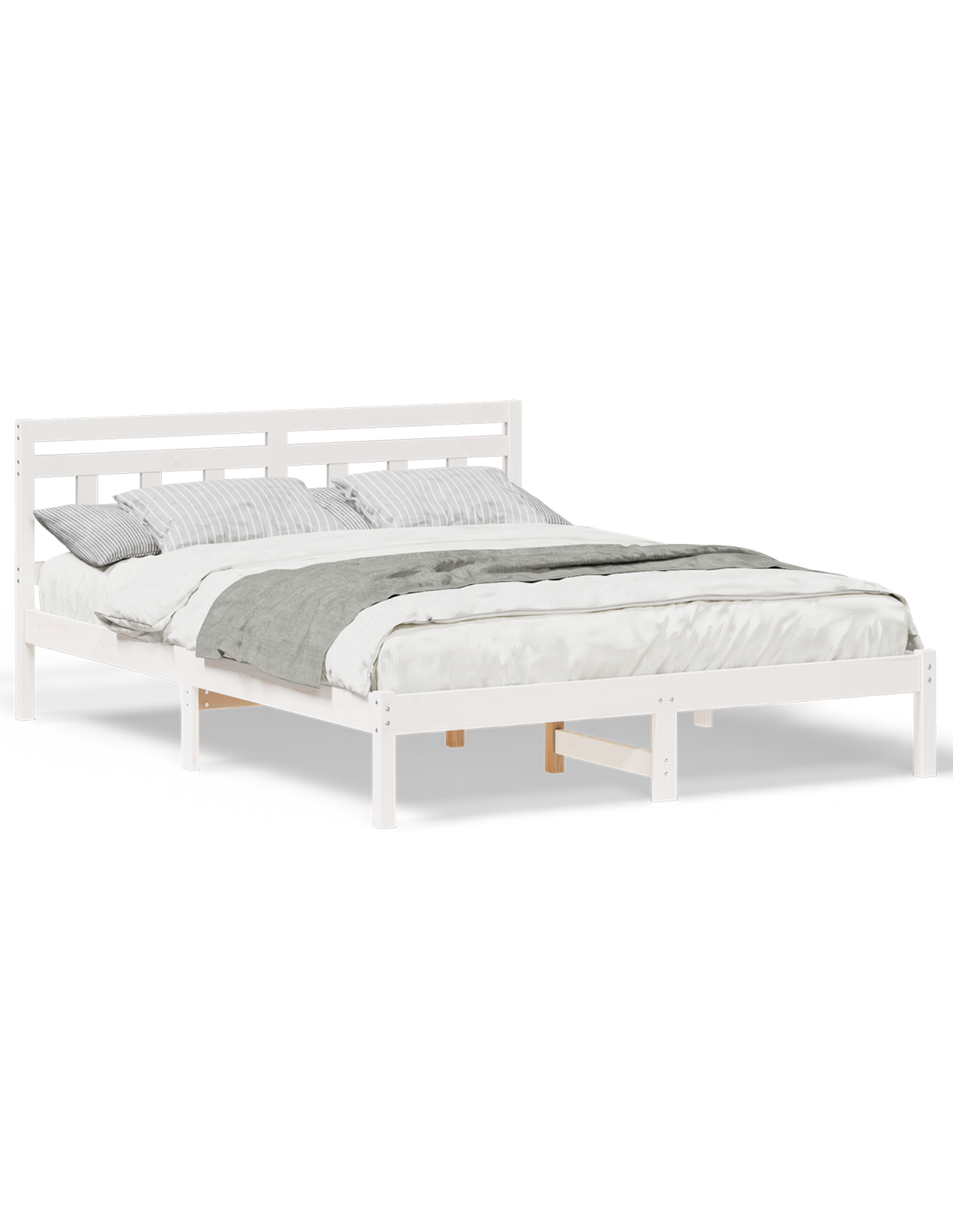 - Costruzione in legno massello di pino: Il letto, la testiera e le gambe sono fatti di legno massello di pino di alta qualità. Questa scelta garantisce robustezza e un aspetto elegante, creando una struttura stabile che resiste all'usura.