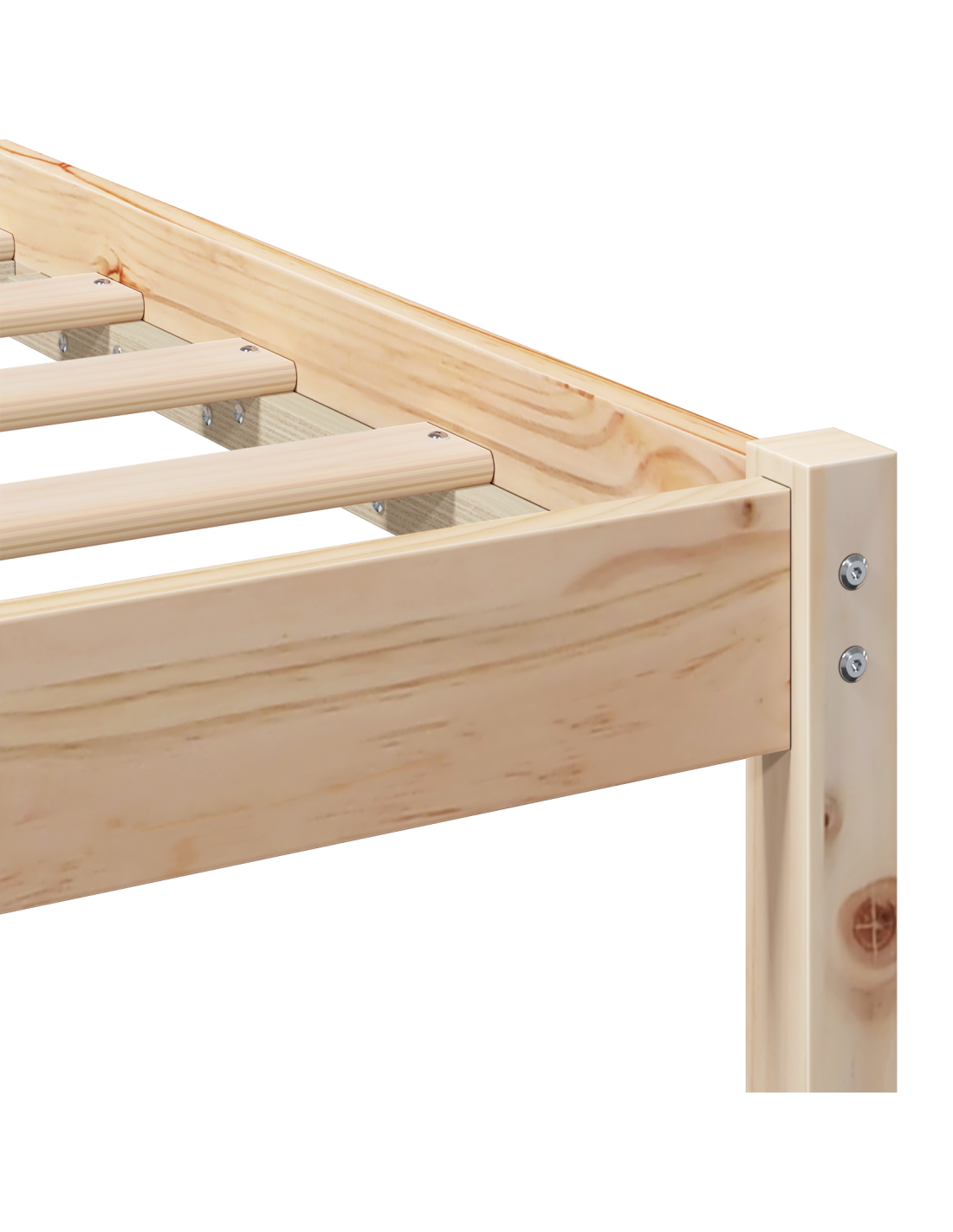 - Costruzione in legno massello di pino: Il letto, la testiera e le gambe sono fatti di legno massello di pino di alta qualità. Questa scelta garantisce robustezza e un aspetto elegante, creando una struttura stabile che resiste all'usura.