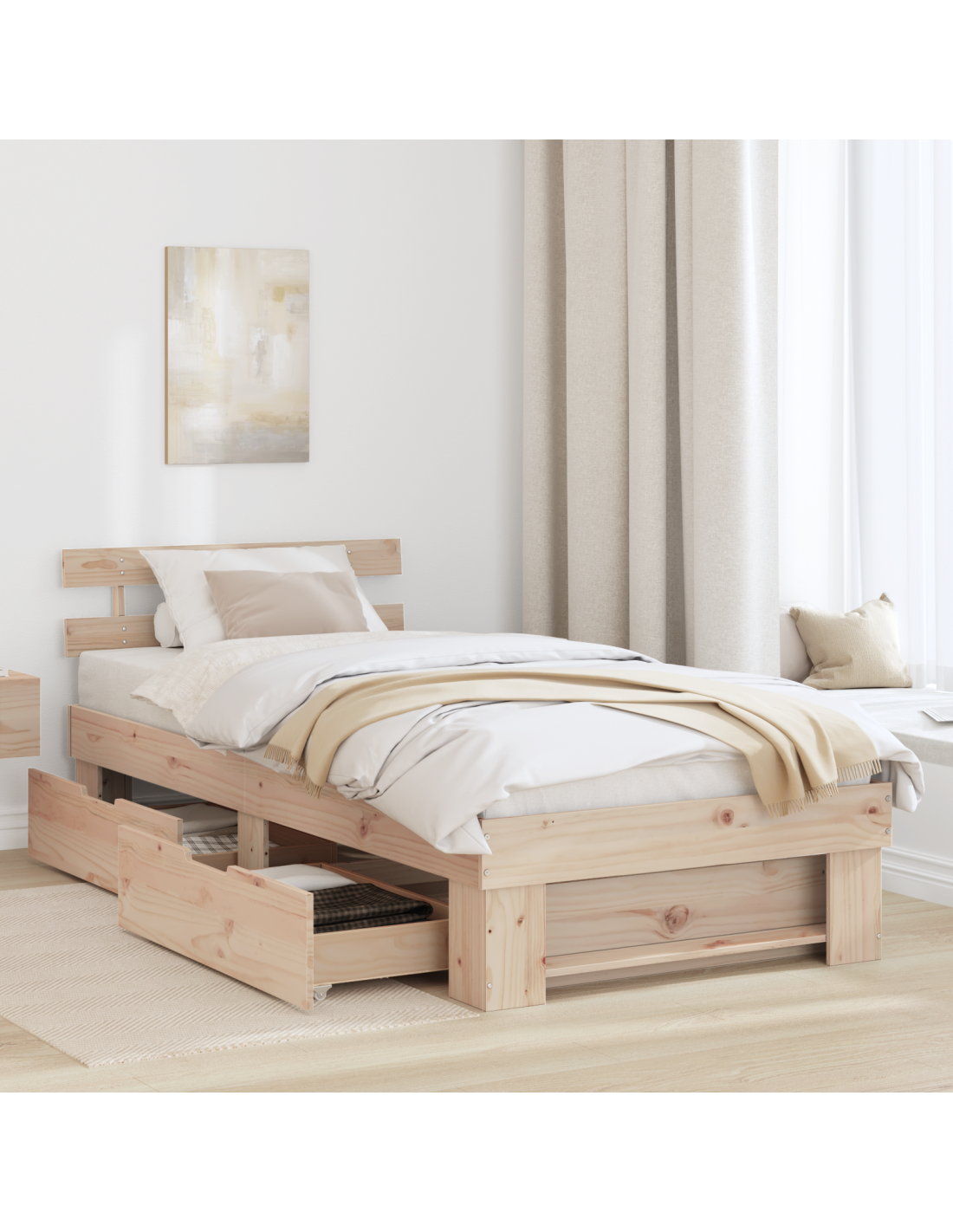 - Spazio di archiviazione ampio: il design integra cassetti aggiuntivi per tenere in ordine la camera. Rendono facile accedere a tutto senza compromettere lo stile.