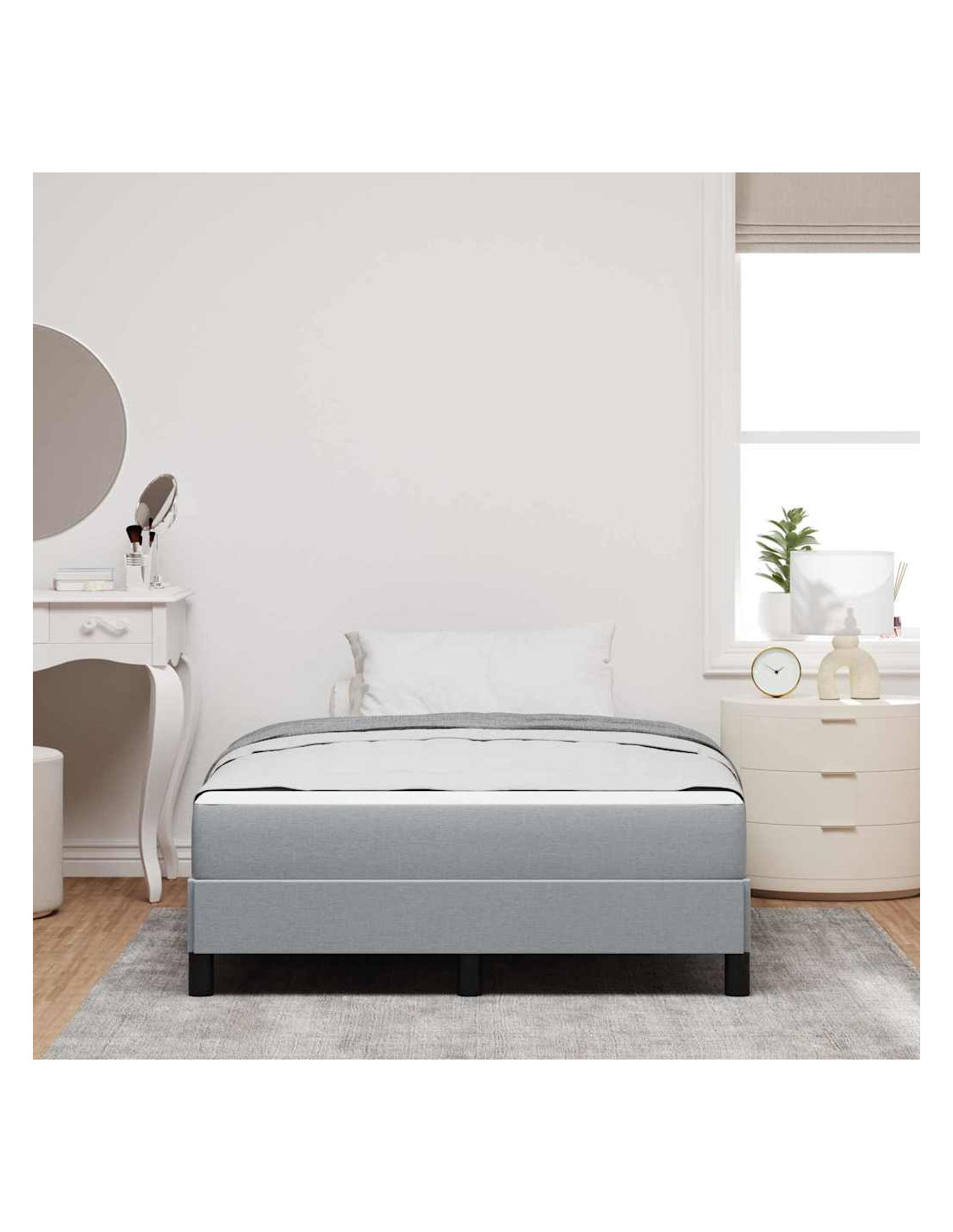 Questo letto a box spring unisce eleganza e funzionalità, offrendo comfort e qualità per ogni camera. Il suo design minimalista, con linee pulite e senza decorazioni, crea un senso di ordine e tranquillità, rendendolo il centro d'attrazione ideale. La combinazione di legno ingegnerizzato e tessuto traspirante assicura un opzione di sonno bella e confortevole per tutti.