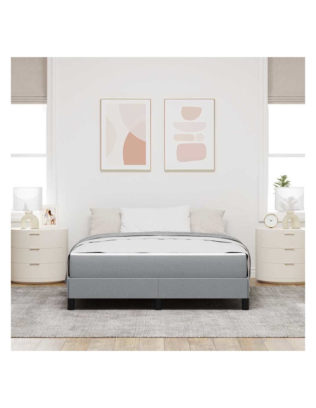 Questo letto a box spring unisce eleganza e funzionalità, offrendo comfort e qualità per ogni camera. Il suo design minimalista, con linee pulite e senza decorazioni, crea un senso di ordine e tranquillità, rendendolo il centro d'attrazione ideale. La combinazione di legno ingegnerizzato e tessuto traspirante assicura un opzione di sonno bella e confortevole per tutti.