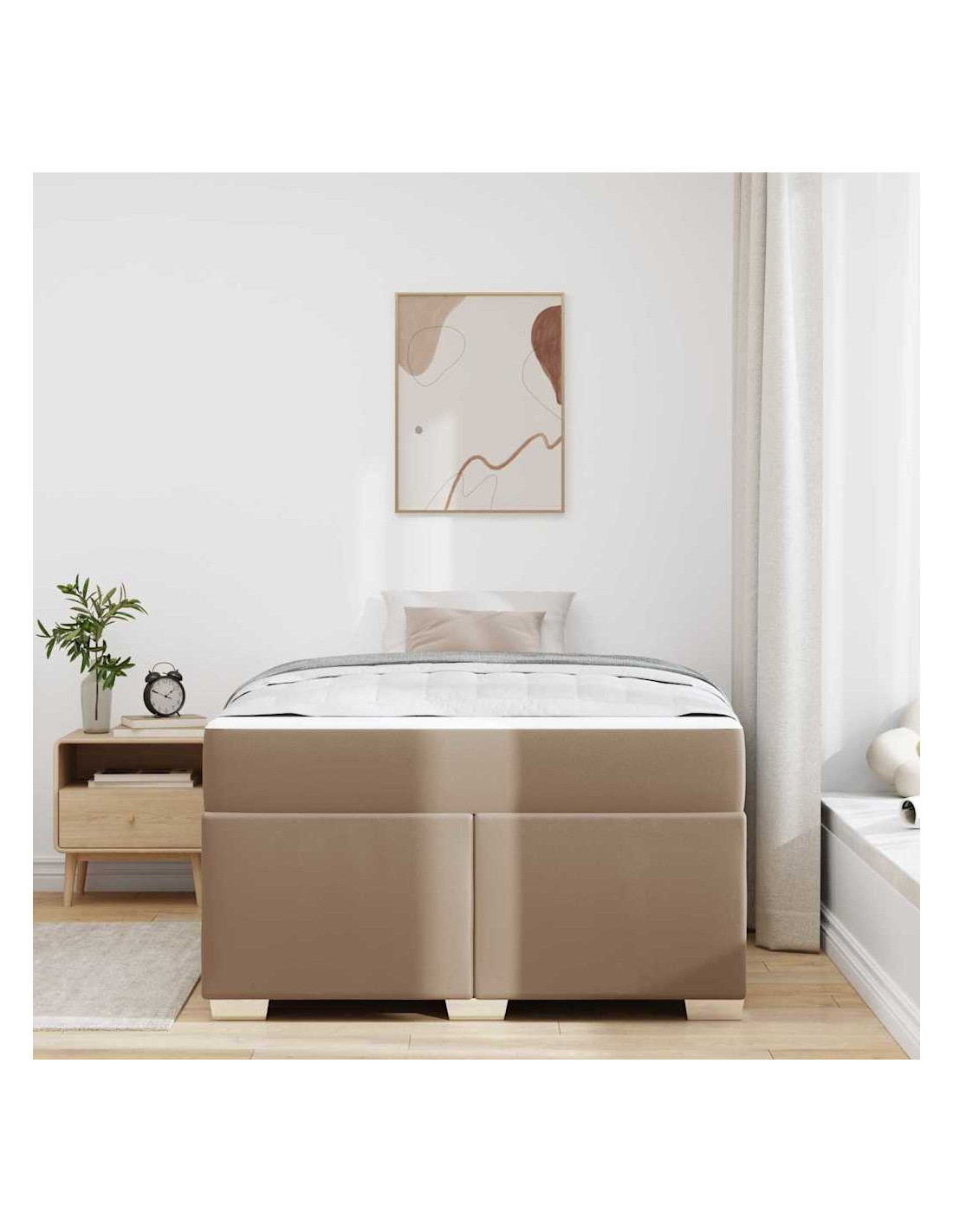 Questo telaio per letto è un esempio di estetica moderna, con linee pulite e design funzionale. Perfetto per ogni camera, unisce semplicità e praticità, creando un luogo di riposo confortevole e alla moda. Il suo fascino visivo arricchisce ogni stanza, invitandoti al relax. La forma rettangolare, insieme a un mix di tessuto e legno ingegnerizzato, dà un tocco contemporaneo e forte supporto. Approfitta dei vantaggi di un design moderno, che si integra perfettamente con vari stili d'interni, creando un'atmosfera accogliente.