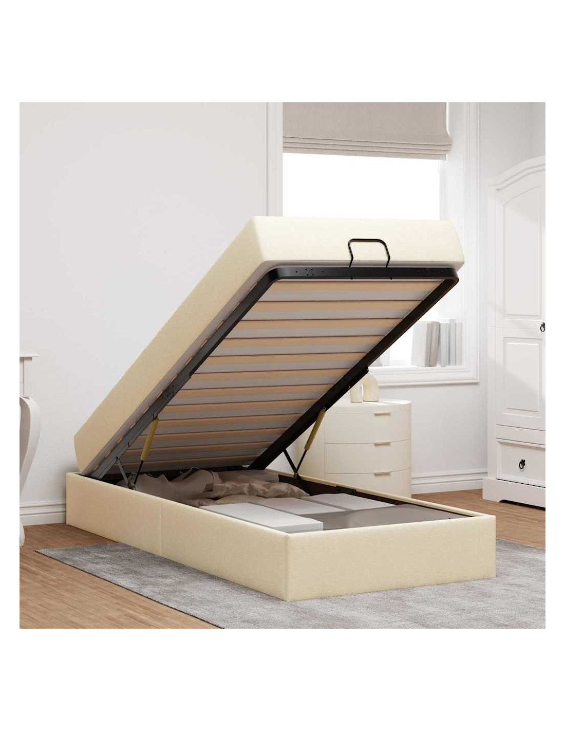 - Spazio di archiviazione comodo Con spazio integrato sotto il materasso, questo letto è perfetto per sfruttare al meglio lo spazio della tua camera. I cassetti discreti offrono spazio ampio per biancheria, vestiti o oggetti personali, rendendo l'organizzazione super semplice ed efficiente.