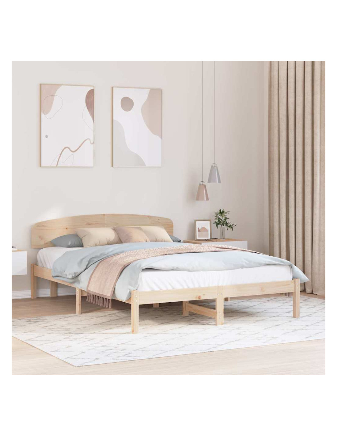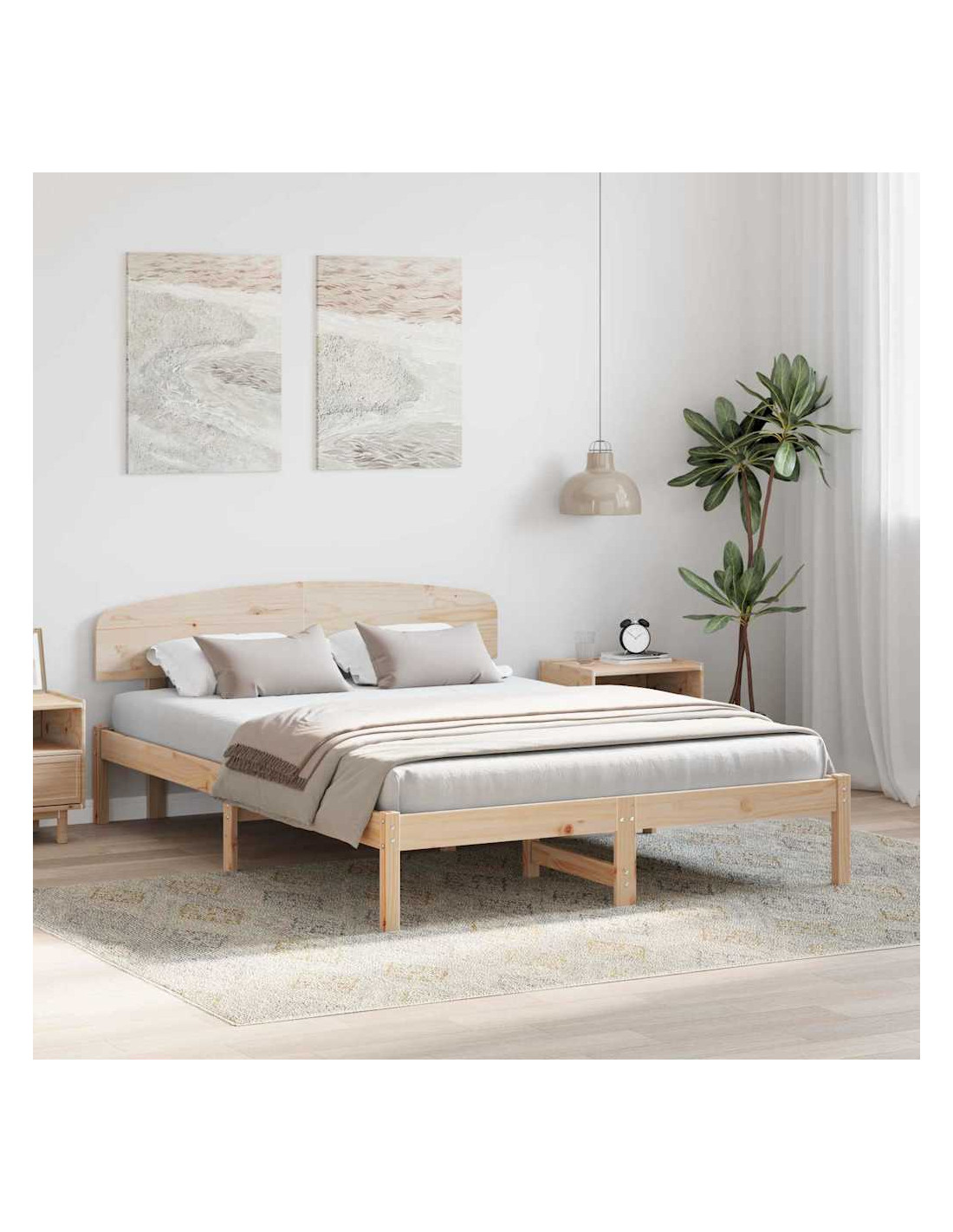 - Costruzione robusta: Questo telaio è fatto in legno massello di pino, noto per forza e stabilità, garantendo supporto affidabile e durata. I materiali di alta qualità assicurano che il letto resista all'uso quotidiano senza compromettere comfort o struttura.