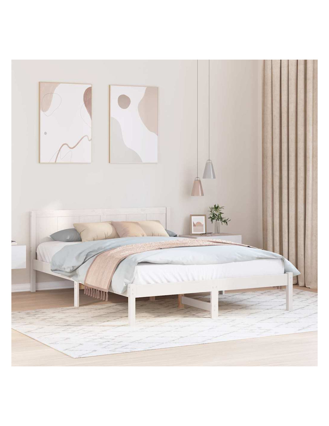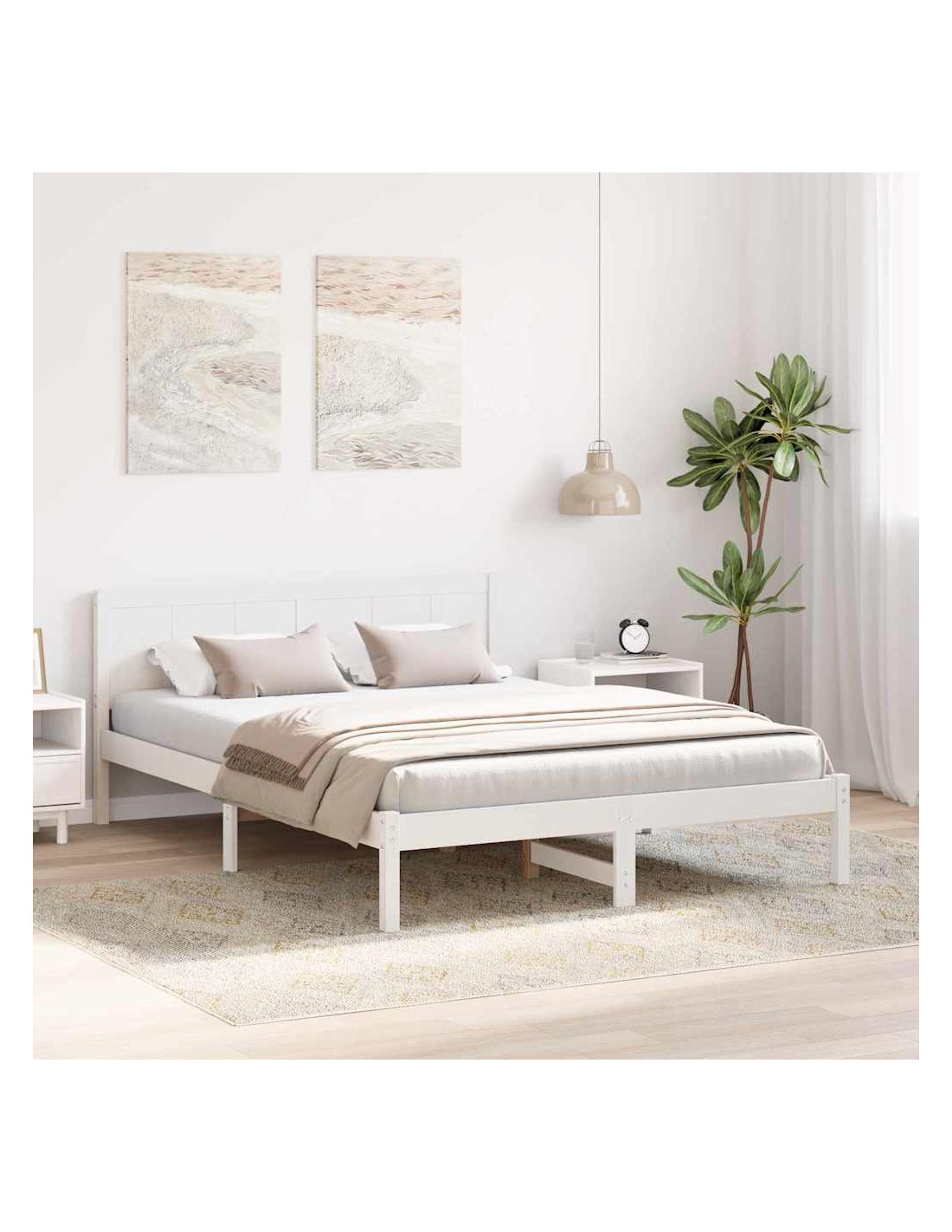 - Legno Massello di Pino Questo telaio è fatto con legno massello di pino di alta qualità, noto per la sua resistenza. Porta calore nella tua stanza e dura per anni.