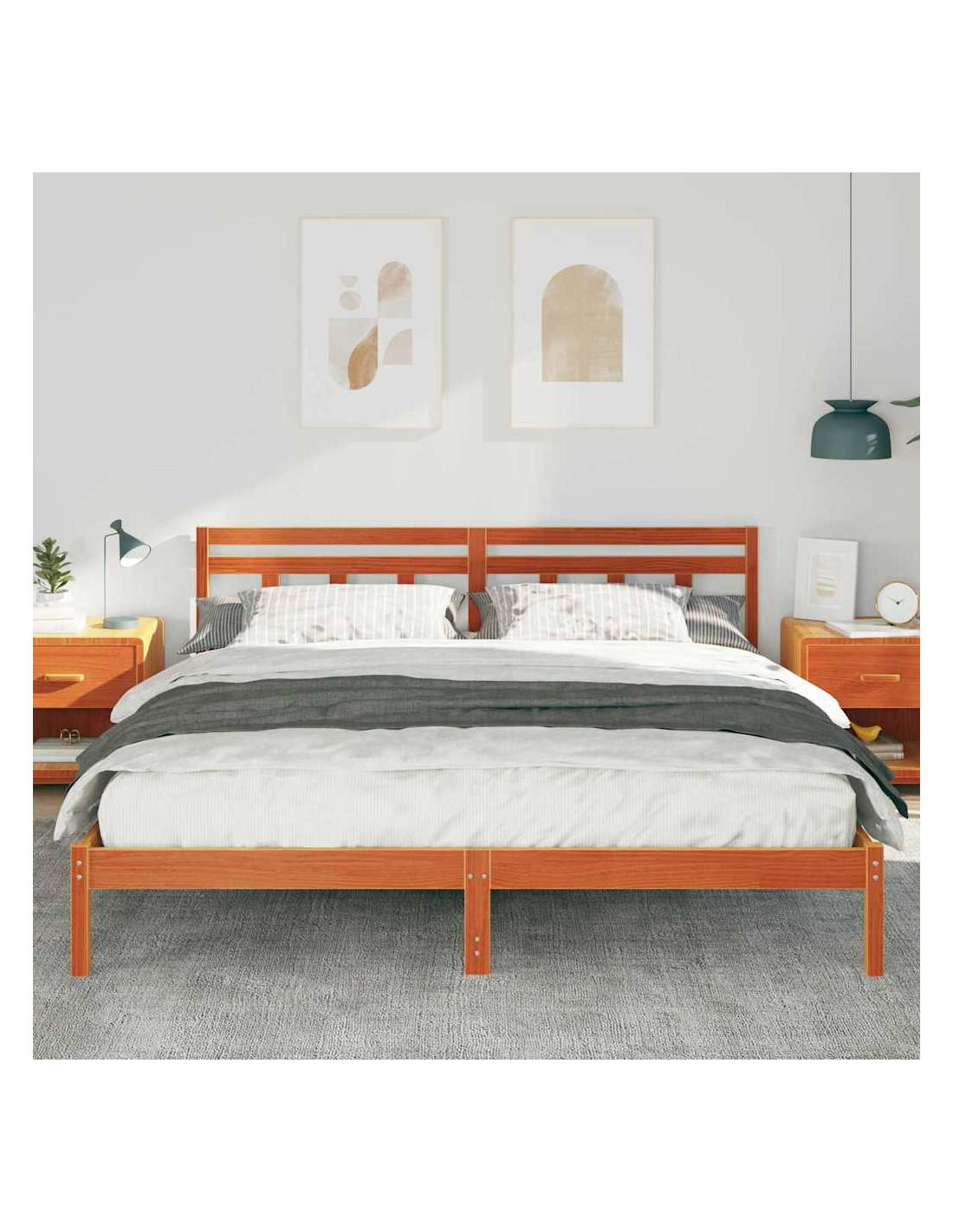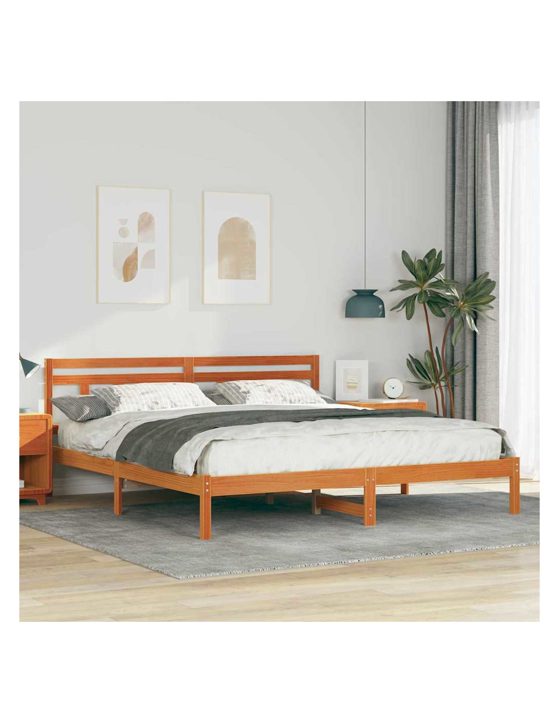 - Costruzione in legno massello di pino: Il letto, la testiera e le gambe sono fatti di legno massello di pino di alta qualità. Questa scelta garantisce robustezza e un aspetto elegante, creando una struttura stabile che resiste all'usura.