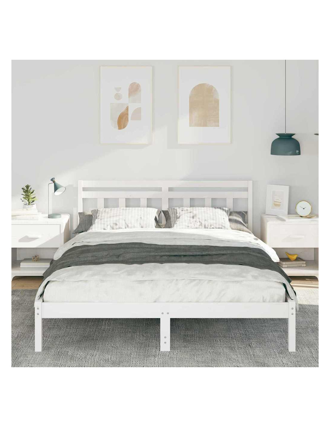 - Costruzione in legno massello di pino: Il letto, la testiera e le gambe sono fatti di legno massello di pino di alta qualità. Questa scelta garantisce robustezza e un aspetto elegante, creando una struttura stabile che resiste all'usura.