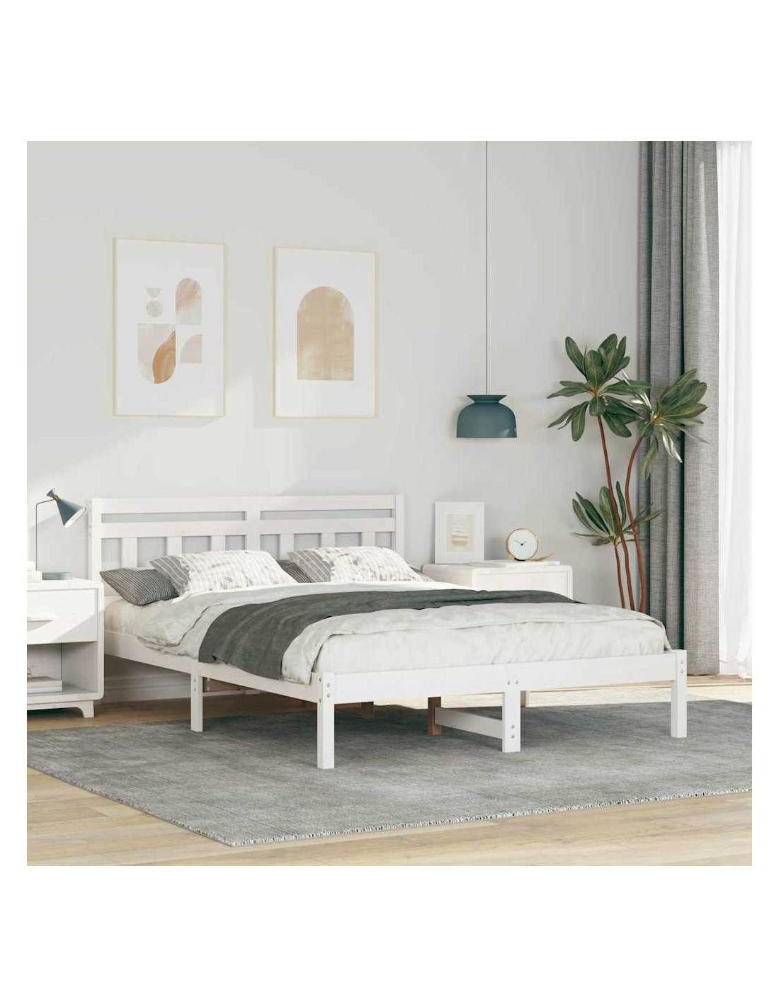 - Costruzione in legno massello di pino: Il letto, la testiera e le gambe sono fatti di legno massello di pino di alta qualità. Questa scelta garantisce robustezza e un aspetto elegante, creando una struttura stabile che resiste all'usura.