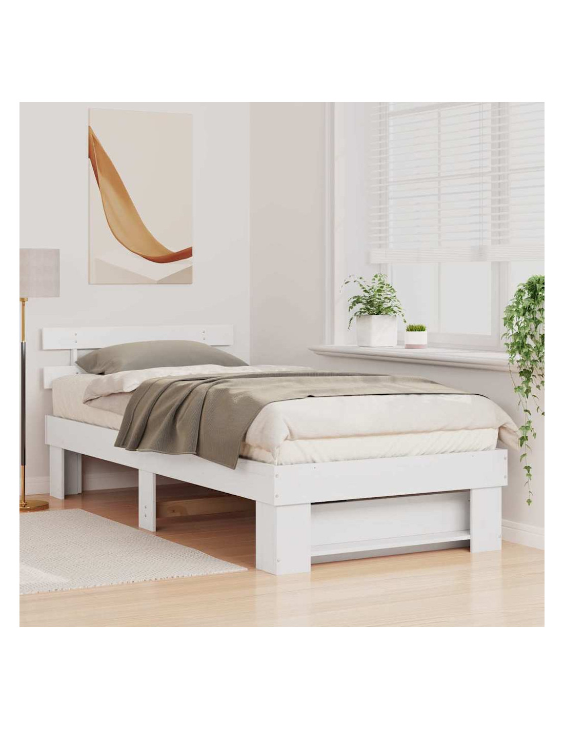 Questo elegante telaio del letto moderno con testiera ha una forma rettangolare minimale, realizzato tutto in legno massello di pino, che è super robusto e bello. Le tonalità calde e naturali e la superficie liscia del legno rendono il letto accogliente e si abbinano facilmente a diverse decorazioni per la camera. Lo stile semplice, con linee pulite, unisce eleganza contemporanea e tradizionale, rendendolo un ottimo pezzo centrale per la tua camera.