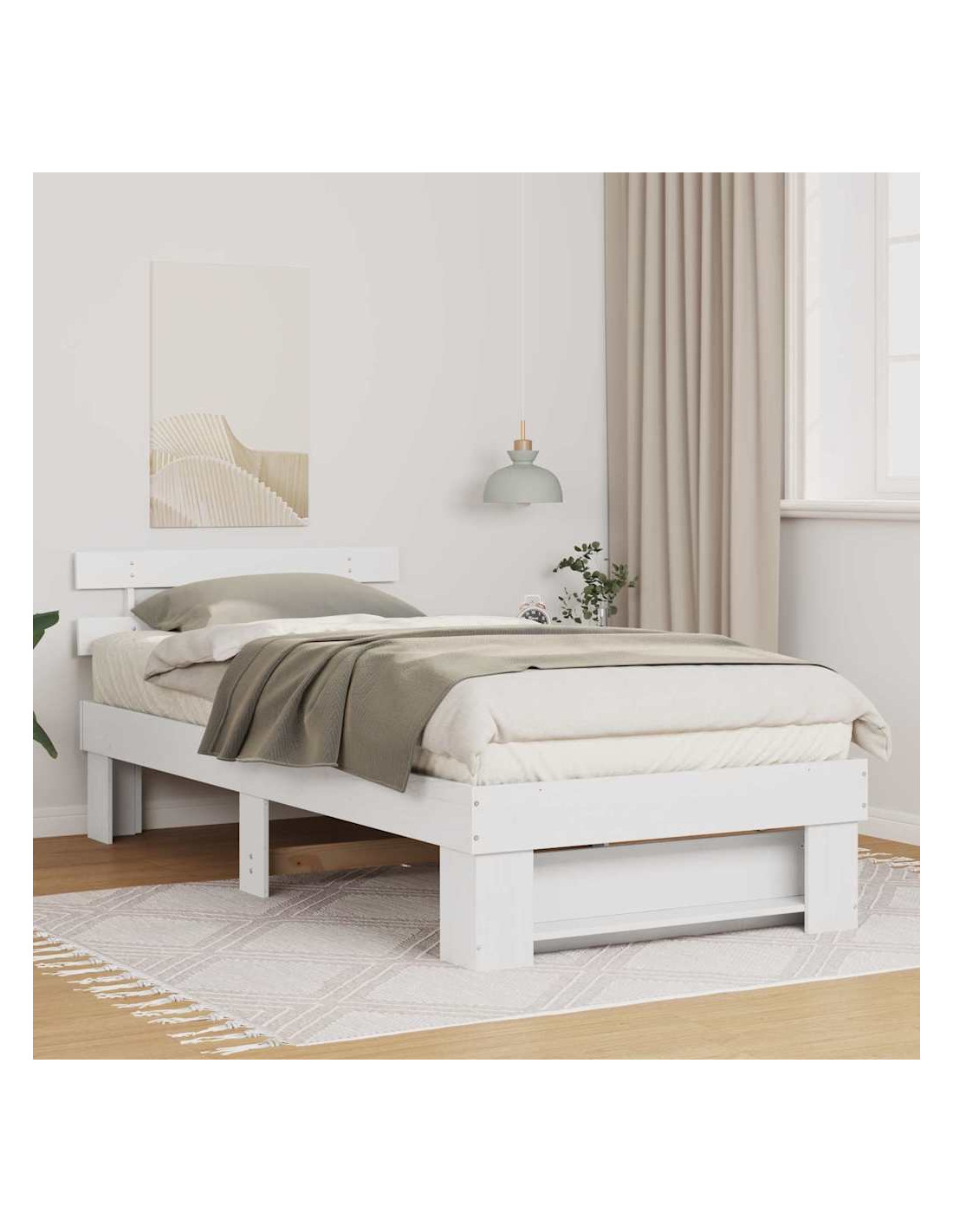 Questo elegante telaio del letto moderno con testiera ha una forma rettangolare minimale, realizzato tutto in legno massello di pino, che è super robusto e bello. Le tonalità calde e naturali e la superficie liscia del legno rendono il letto accogliente e si abbinano facilmente a diverse decorazioni per la camera. Lo stile semplice, con linee pulite, unisce eleganza contemporanea e tradizionale, rendendolo un ottimo pezzo centrale per la tua camera.