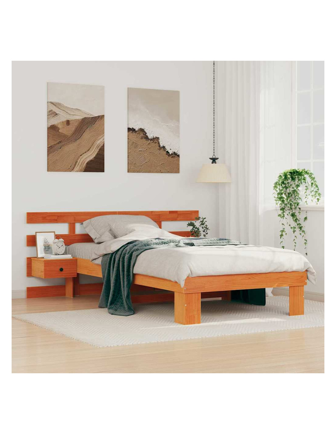 Questa struttura del letto piattaforma porta un mix di eleganza e semplicità nella tua camera, con un design moderno e linee pulite. Fatta in legno massello di pino, offre una base robusta e si adatta a qualsiasi ambiente della camera da letto. Con la sua forma rettangolare e texture liscia, aggiunge un tocco di classe, perfetta per decorazioni contemporanee e minimaliste.