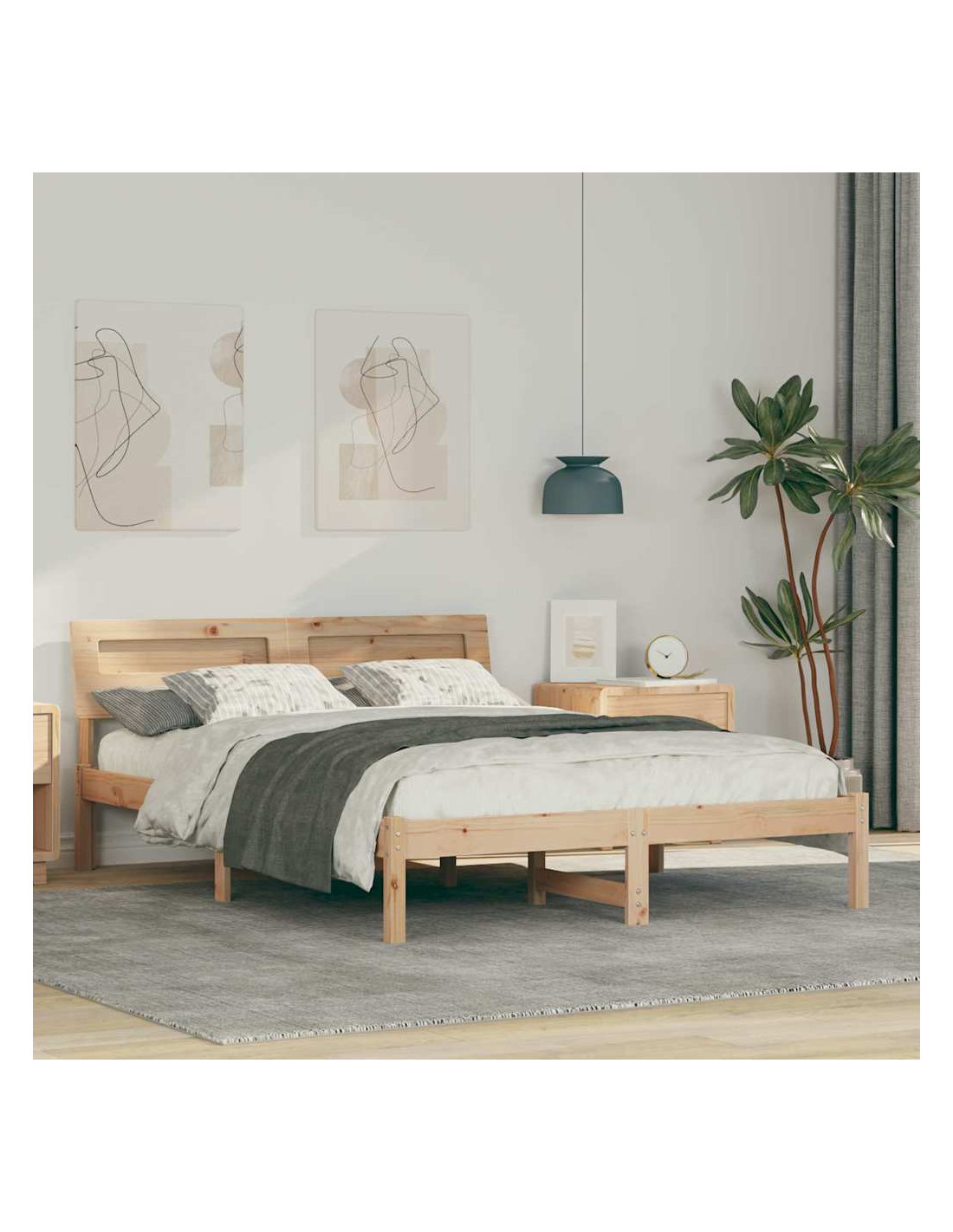 Questo letto a piattaforma con testiera è un'aggiunta elegante e moderna alla tua camera. Fatto in legno massello di pino, ha una forma rettangolare con texture lisce che lo rende visivamente accattivante. Si integra perfettamente in un ambiente minimalista o contemporaneo, fornendo un supporto solido e affidabile per il materasso, aggiungendo eleganza e semplicità all'area del sonno.