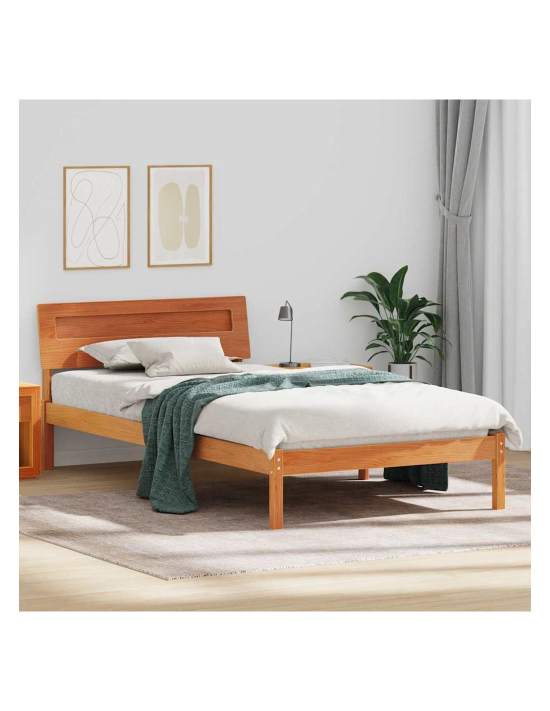 - Costruzione in legno massello di pino: Questo telaio è fatto in legno massello di pino, noto per la sua durabilità e prestazioni eccellenti. La sua robustezza offre fiducia, assicurando una base stabile per il materasso. Le venature naturali e i toni caldi del legno aumentano il valore estetico della camera, rendendola più invitante.