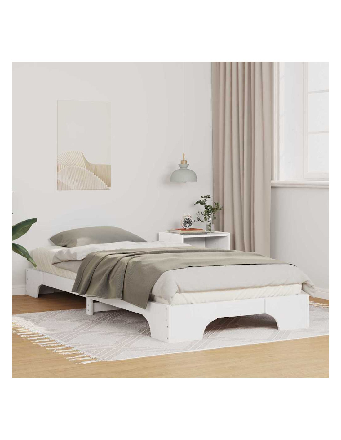 Questo letto Moderno rappresenta semplicità e praticità, con linee pulite e un design minimalista, ideale per camere moderne. Costruito in legno massello di pino, offre un'opzione robusta e stilosa per il tuo spazio notte. È il pezzo centrale discreto di ogni camera, adattandosi perfettamente a diversi stili d'arredamento mentre ti garantisce supporto per un sonno tranquillo.