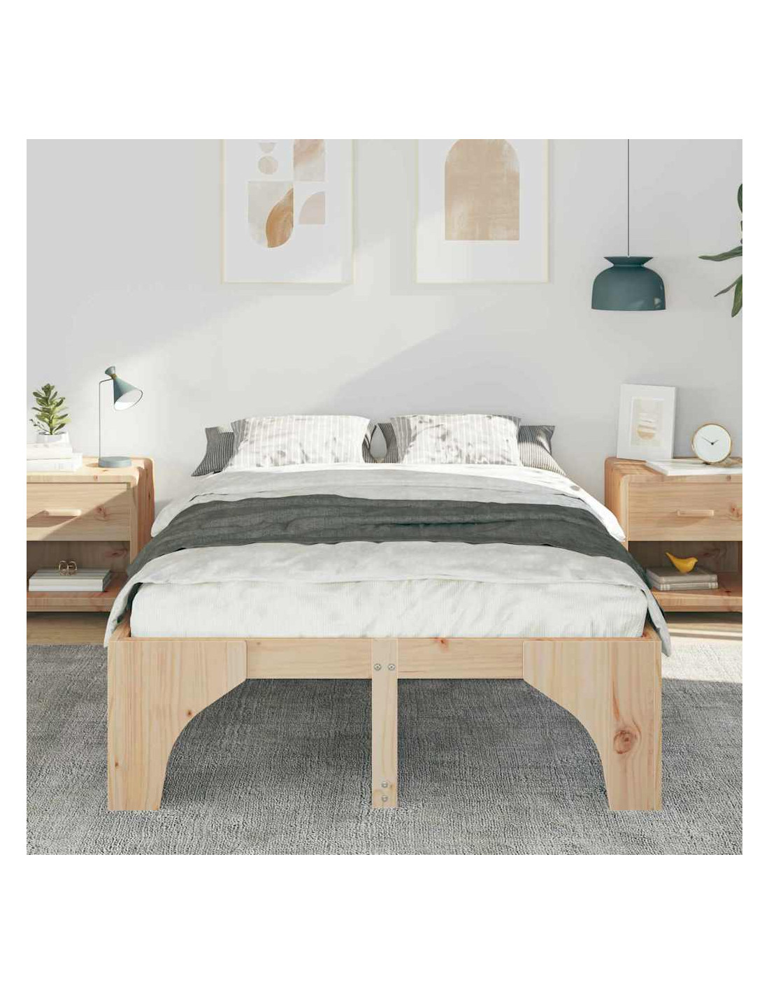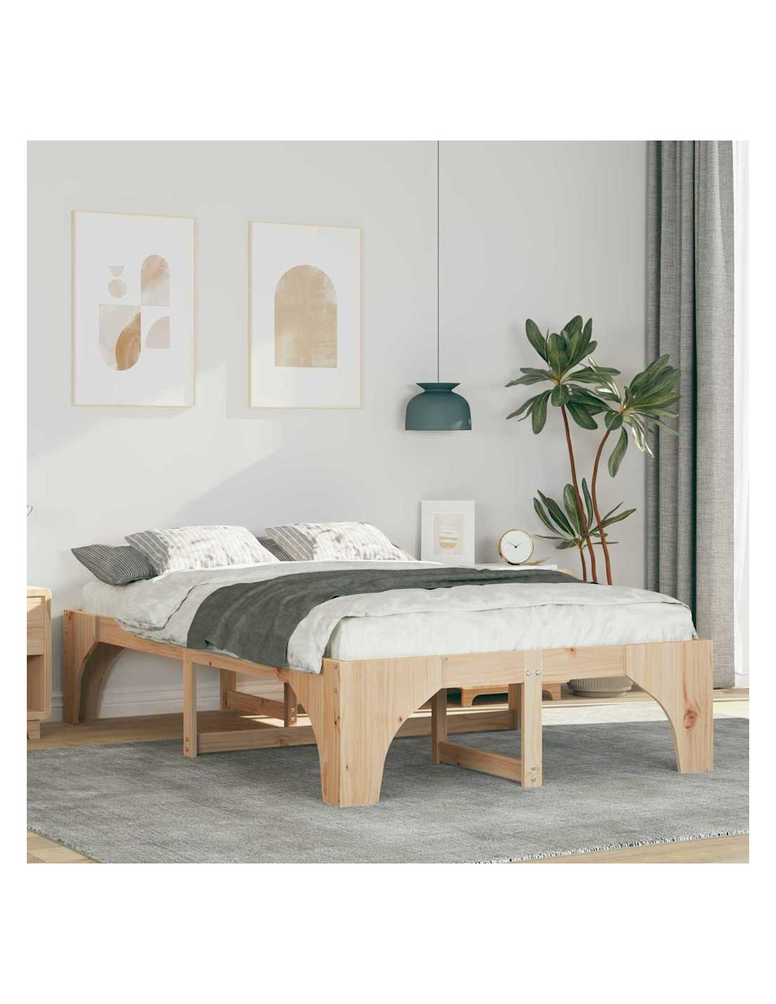 - Materiale in legno massello di pino: Il telaio è in legno massello di pino resistente, che offre solidità e durata. Questo materiale naturale è conosciuto per la sua superficie liscia e il suo aspetto gradevole, ideale per chi cerca forza e bellezza nei mobili. Sarà un punto fermo nella tua casa per anni.