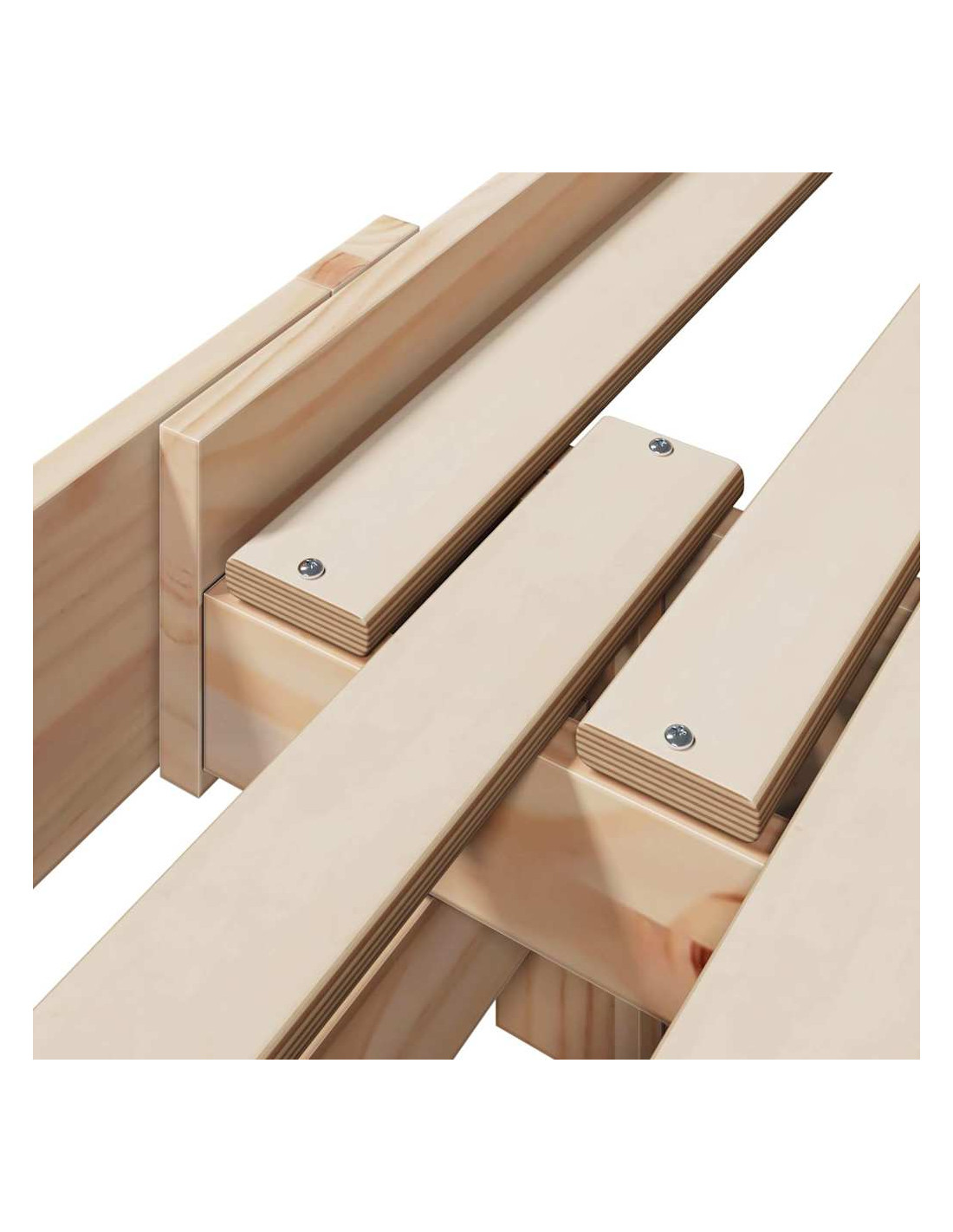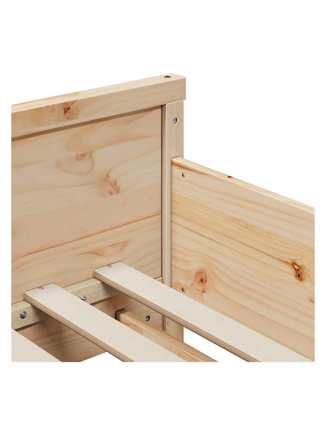 - Include testiera e pediera: Testiera e pediera offrono supporto extra e completano il design della struttura. Sono realizzate in legno di pino dello stesso tipo, per un aspetto coerente e funzionale.