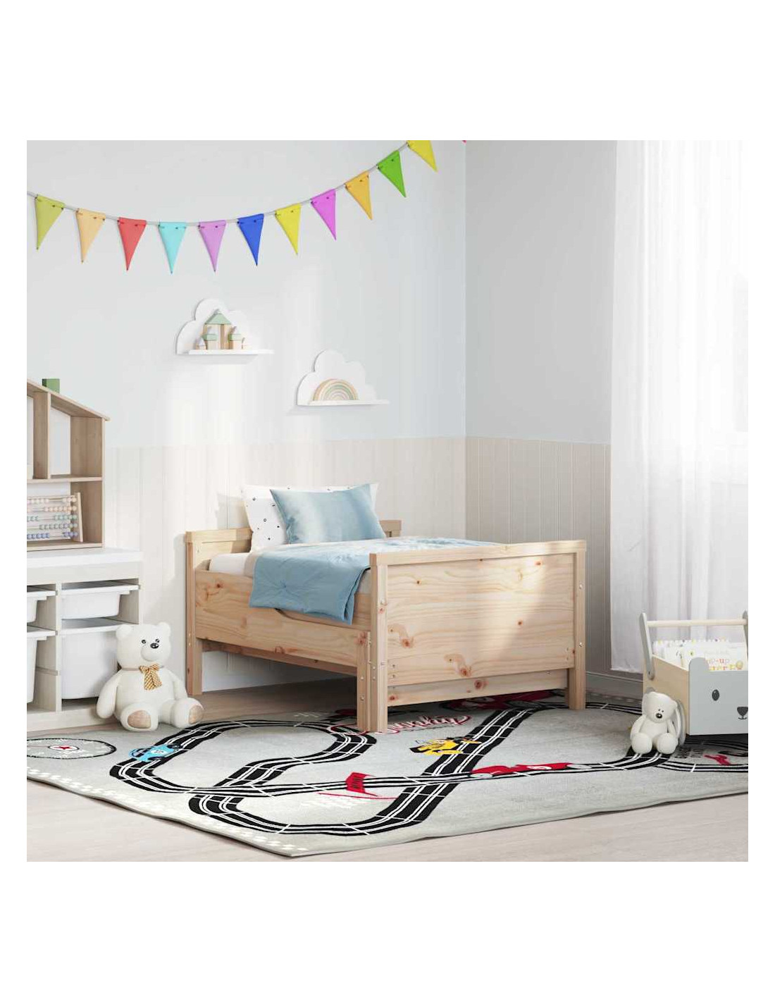 Questa struttura per letto per bambini in legno di pino massello porta un tocco elegante e moderno nella camera di ogni bambino. Con linee pulite e una forma rettangolare, è una base chic ma semplice per l'arredamento, perfetta per chi ama uno stile minimalista. Le sue dimensioni la rendono ideale per stanze più piccole, ottimizzando lo spazio senza compromettere il comfort. Questa struttura combina praticità e stile moderno, adattandosi perfettamente a qualsiasi ambiente abitativo contemporaneo.