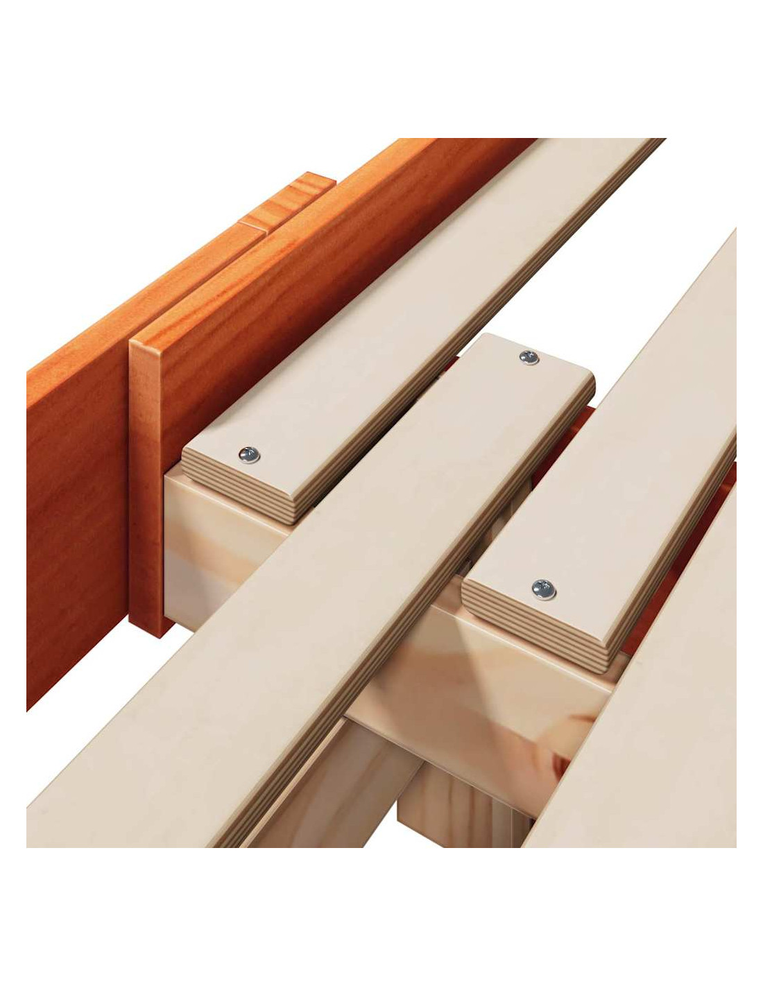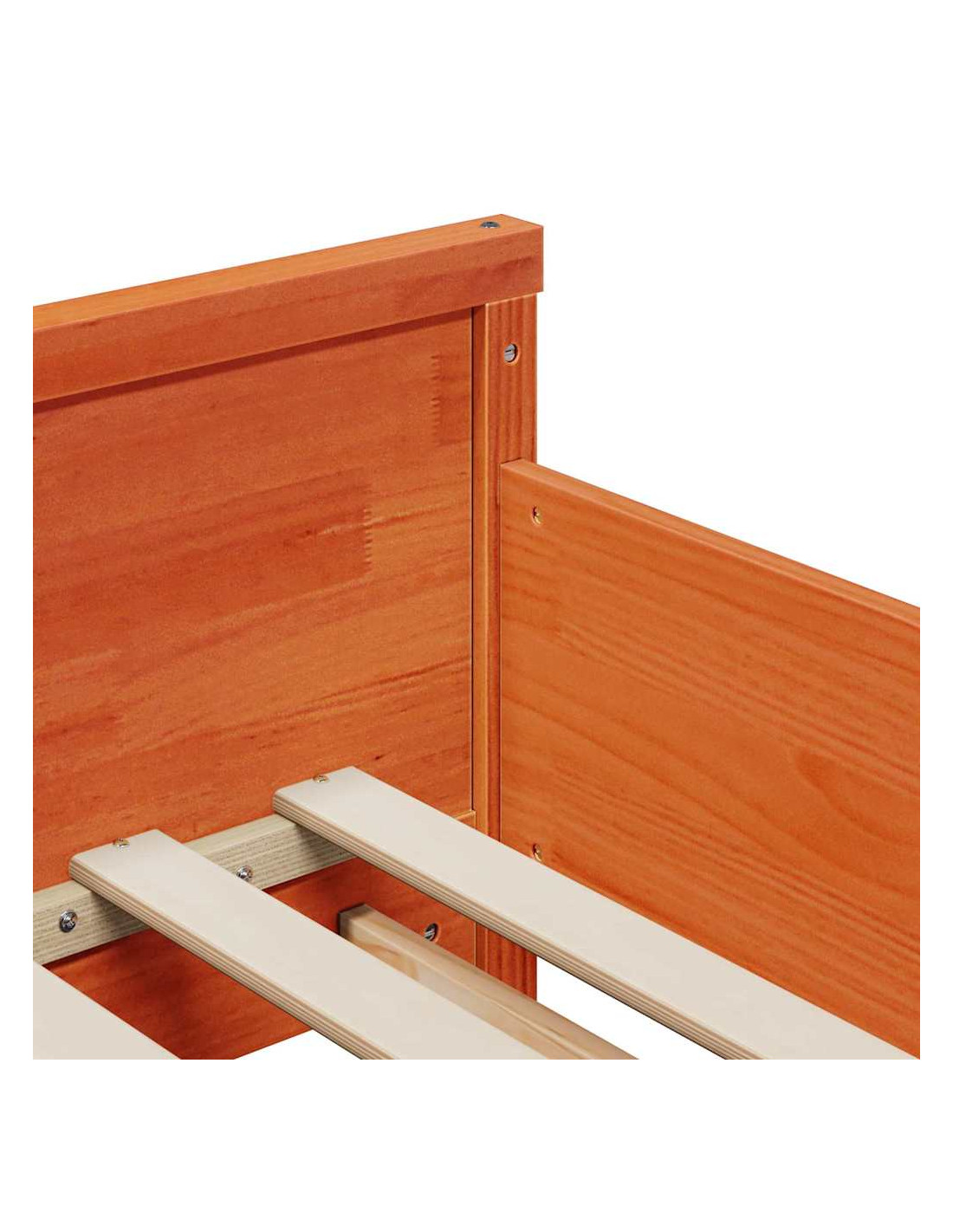 - Costruzione in pino massello: Questa struttura per letto è creata in legno di pino massello di alta qualità, garantendo una lunga durata. Il materiale resiste all'abrasione e mantiene un aspetto lucido anche dopo anni di utilizzo. È anche bello e naturale, il che rende questa struttura decorativa e funzionale.