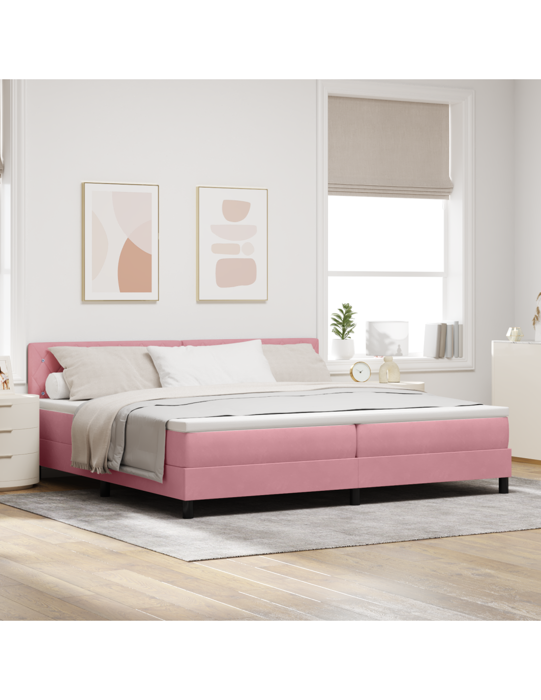 - Materiali: Il letto è fatto di velluto che dà un'aria di classe, offrendo una superficie morbida e traspirante per il relax. Il legno ingegnerizzato sostiene la struttura e il legno massello di pino aggiunge eleganza. Questa combinazione assicura durata e un aspetto sempre in voga nella tua camera da letto moderna.