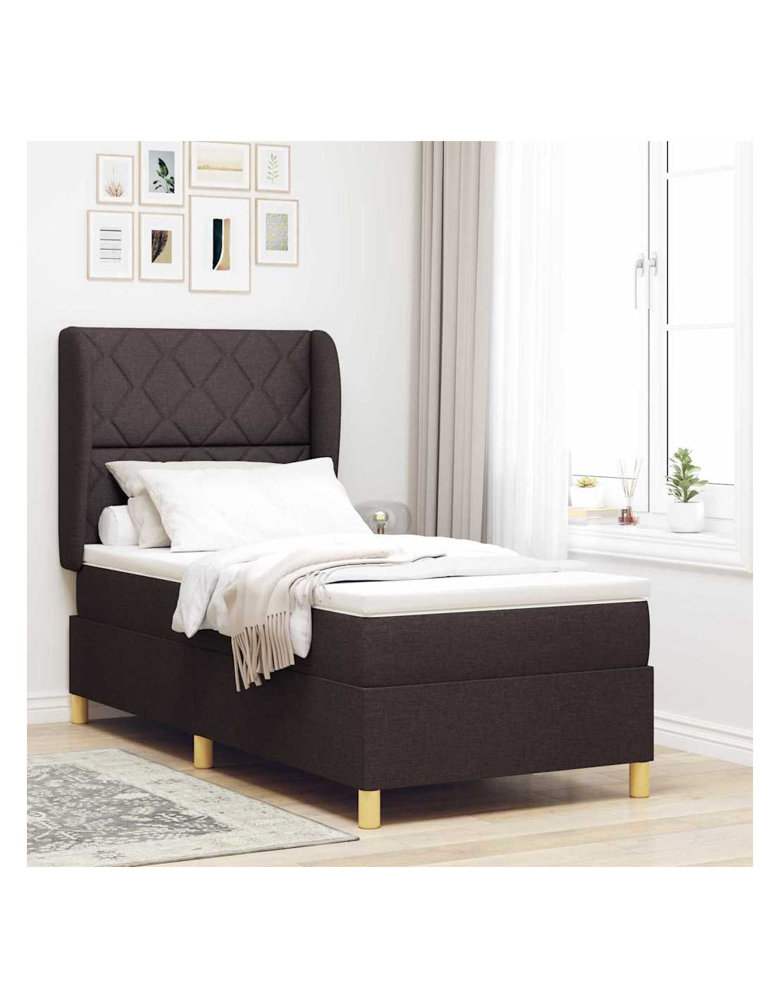 Il letto con molle e materasso in tessuto grigio scuro è dove lo stile moderno incontra la praticità. È un pezzo unico per qualsiasi camera da letto, con linee pulite e un look semplice. È un grande mix di comfort e robustezza, perfetto per tutti.
