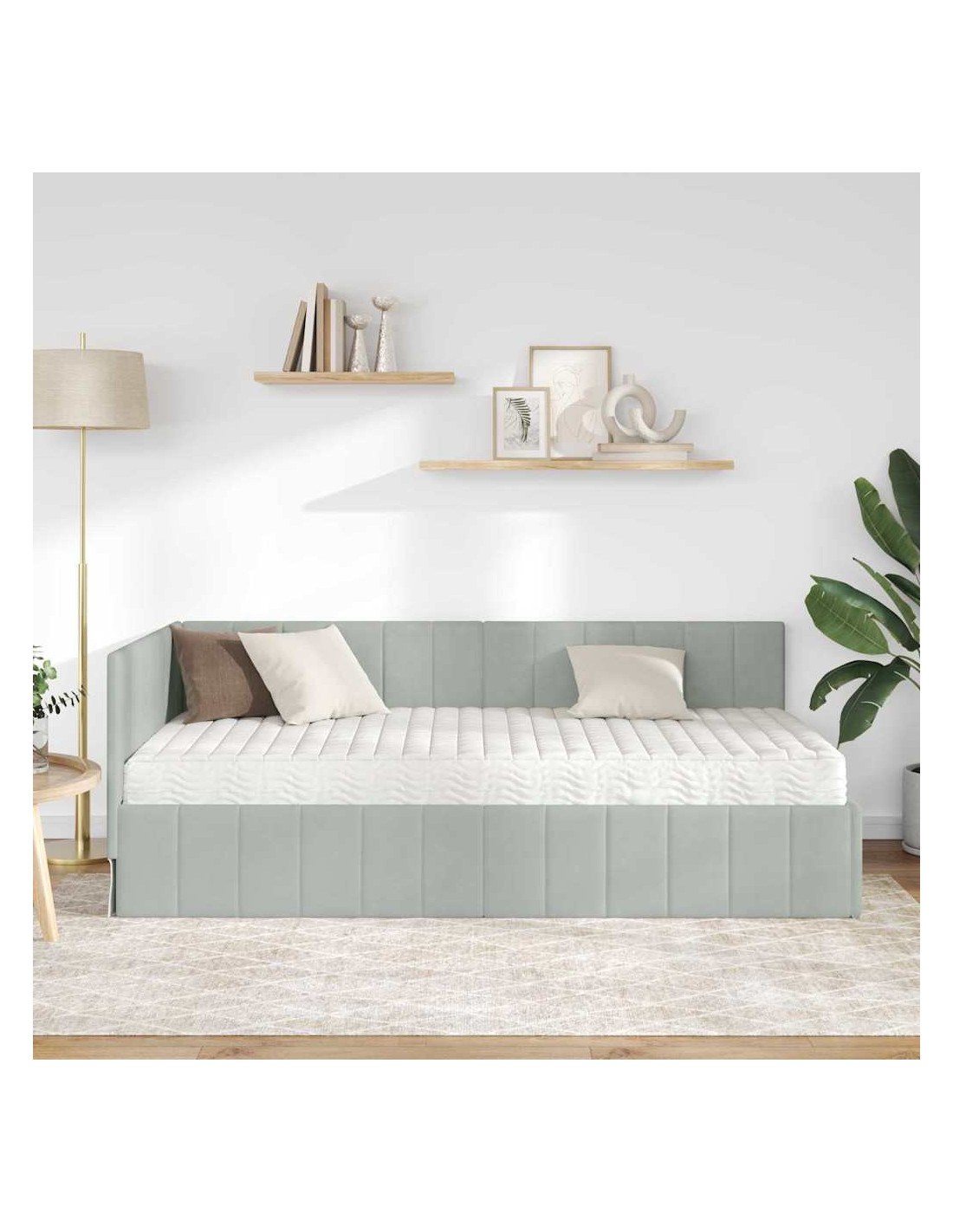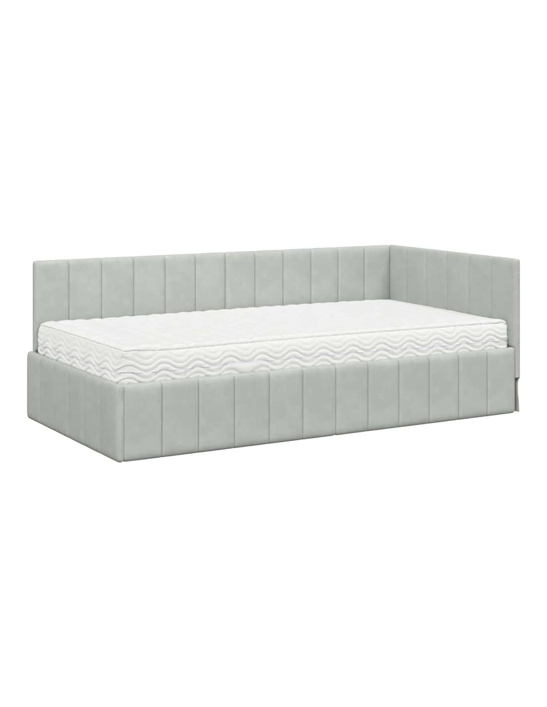 Questa struttura per letto angolare rettangolare in velluto è il colpo d'occhio perfetto per qualsiasi camera da letto elegante. Il suo design snello e la testiera in velluto di alta qualità aggiungono un tocco morbido che esalta l'eleganza del tuo spazio. Costruita in legno ingegnerizzato per una base forte e durevole, è perfetta per chi vive in città e per i minimalisti che vogliono rendere più bella la loro area notte con un pò di stile e funzionalità.