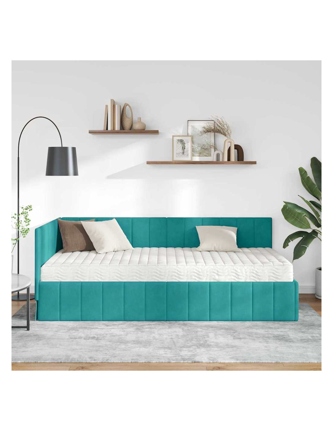 Questa struttura per letto angolare rettangolare in velluto è il colpo d'occhio perfetto per qualsiasi camera da letto elegante. Il suo design snello e la testiera in velluto di alta qualità aggiungono un tocco morbido che esalta l'eleganza del tuo spazio. Costruita in legno ingegnerizzato per una base forte e durevole, è perfetta per chi vive in città e per i minimalisti che vogliono rendere più bella la loro area notte con un pò di stile e funzionalità.
