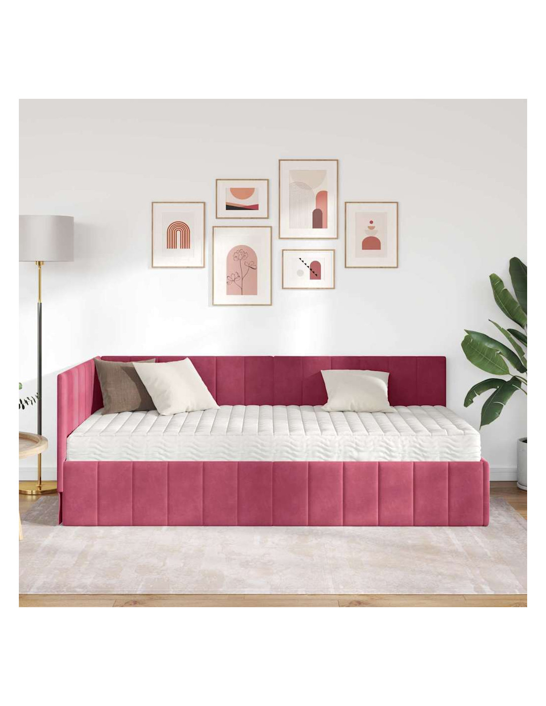 Questa struttura per letto angolare rettangolare in velluto è il colpo d'occhio perfetto per qualsiasi camera da letto elegante. Il suo design snello e la testiera in velluto di alta qualità aggiungono un tocco morbido che esalta l'eleganza del tuo spazio. Costruita in legno ingegnerizzato per una base forte e durevole, è perfetta per chi vive in città e per i minimalisti che vogliono rendere più bella la loro area notte con un pò di stile e funzionalità.